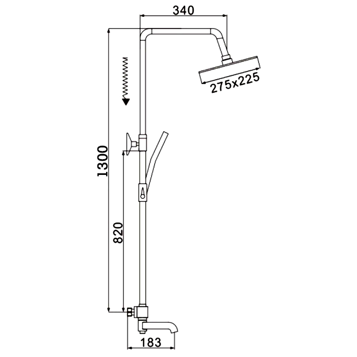 | Комплектация | смеситель, душевая стойка, верхний душ, душевая лейка, душевой шланг, держатель для душевой лейки, настенный держатель, отражатели, эксцентрики |
