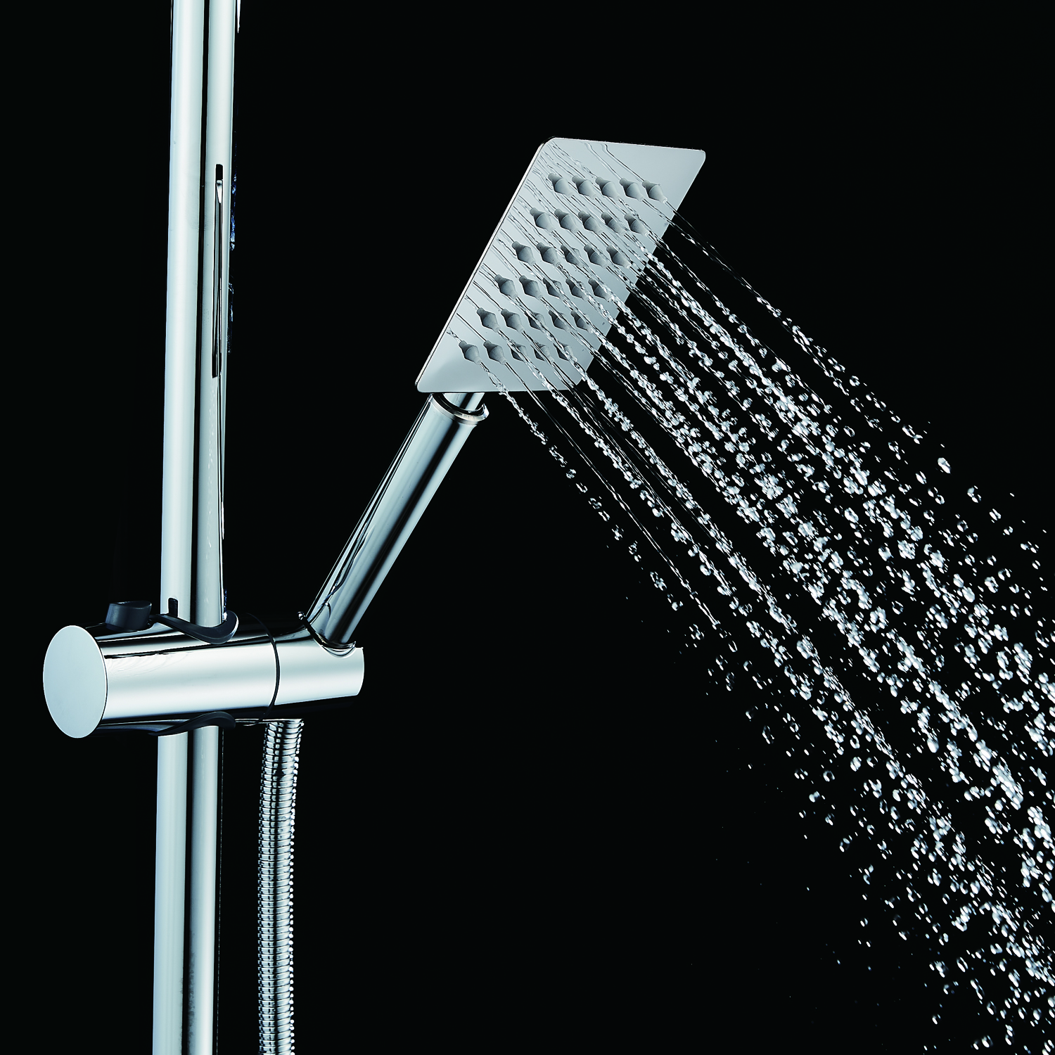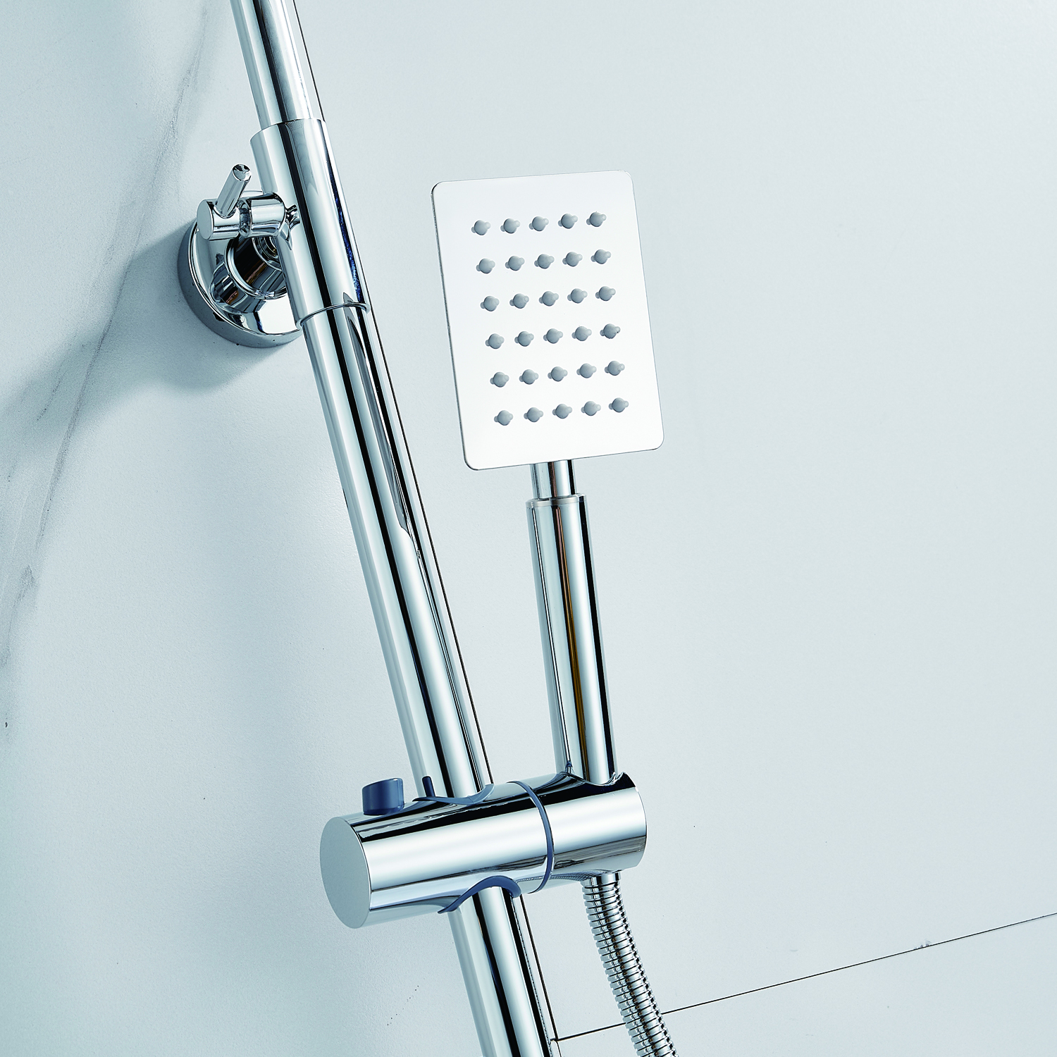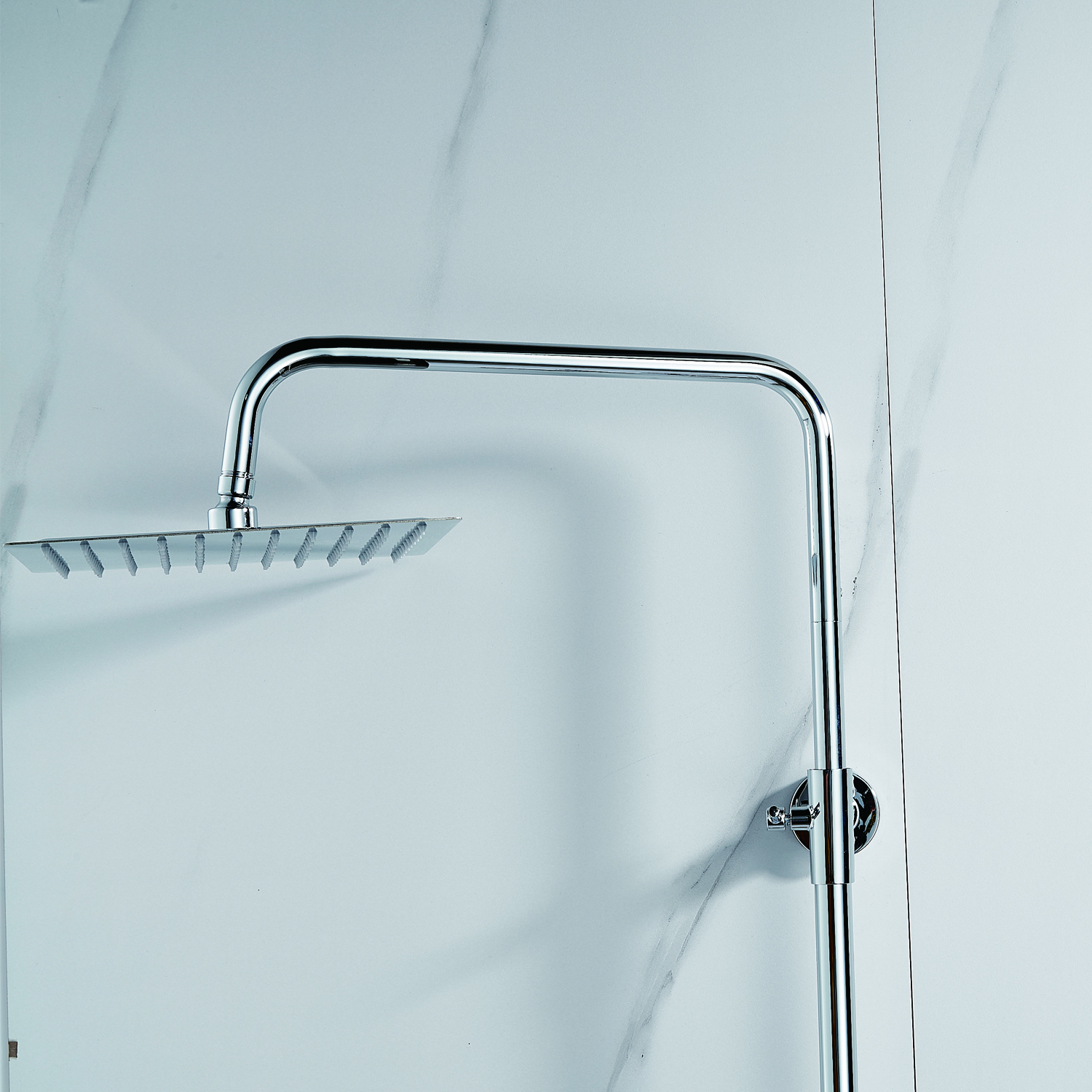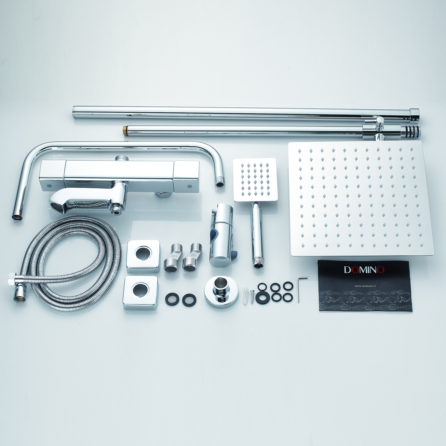 | Комплектация | смеситель, душевая стойка, верхний душ, душевая лейка, душевой шланг, держатель для душевой лейки, настенный держатель, отражатели, эксцентрики |
