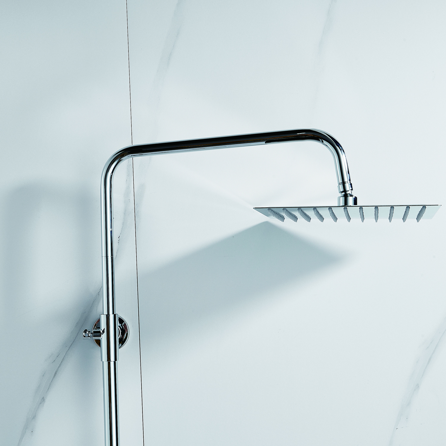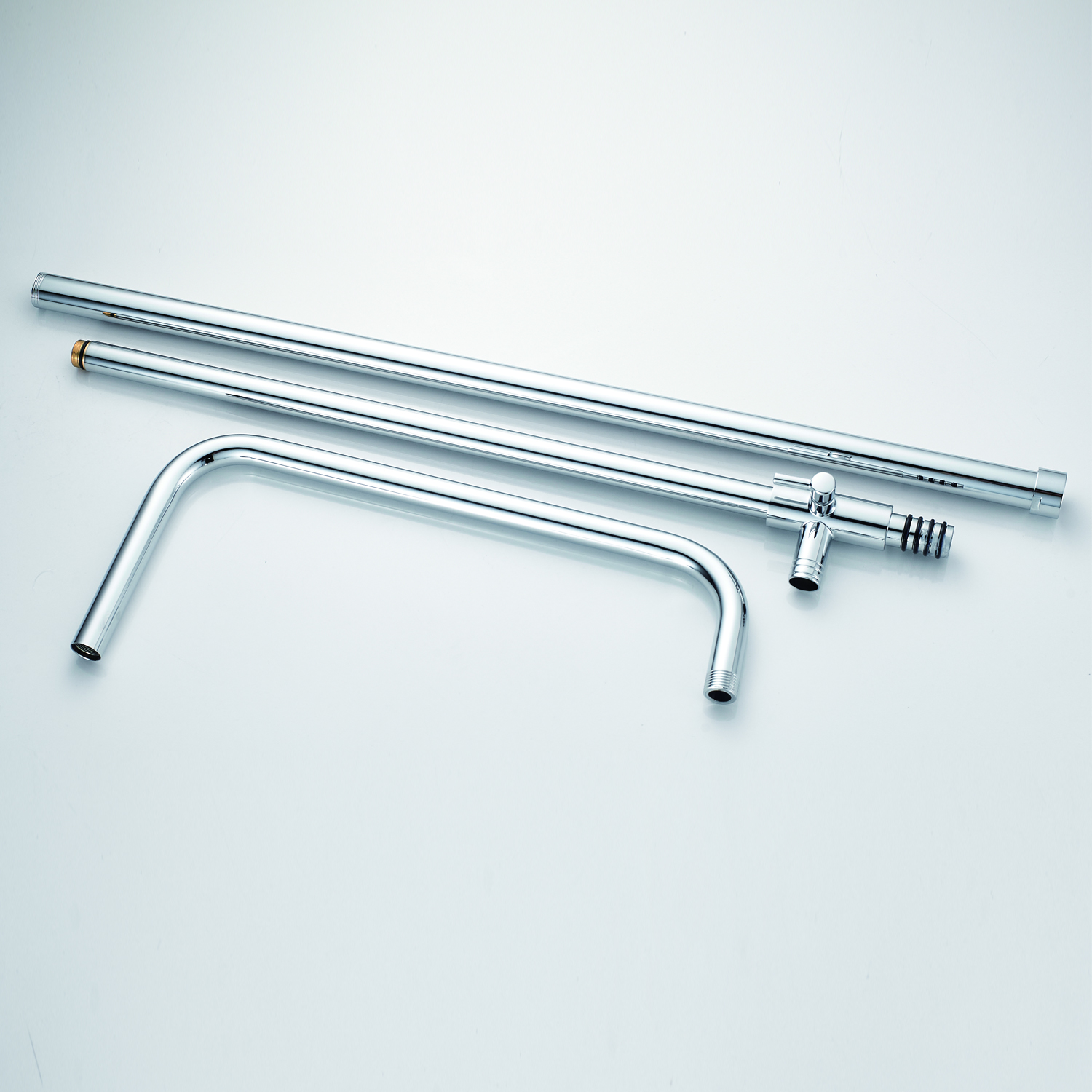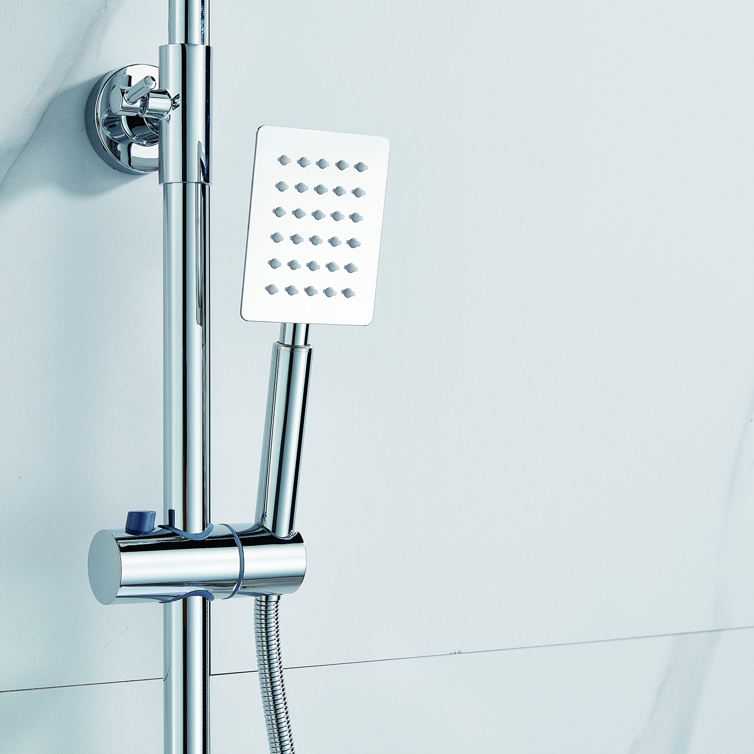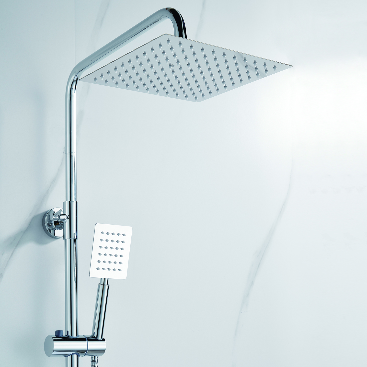 | Комплектация | смеситель, душевая стойка, верхний душ, душевая лейка, душевой шланг, держатель для душевой лейки, настенный держатель, отражатели, эксцентрики |