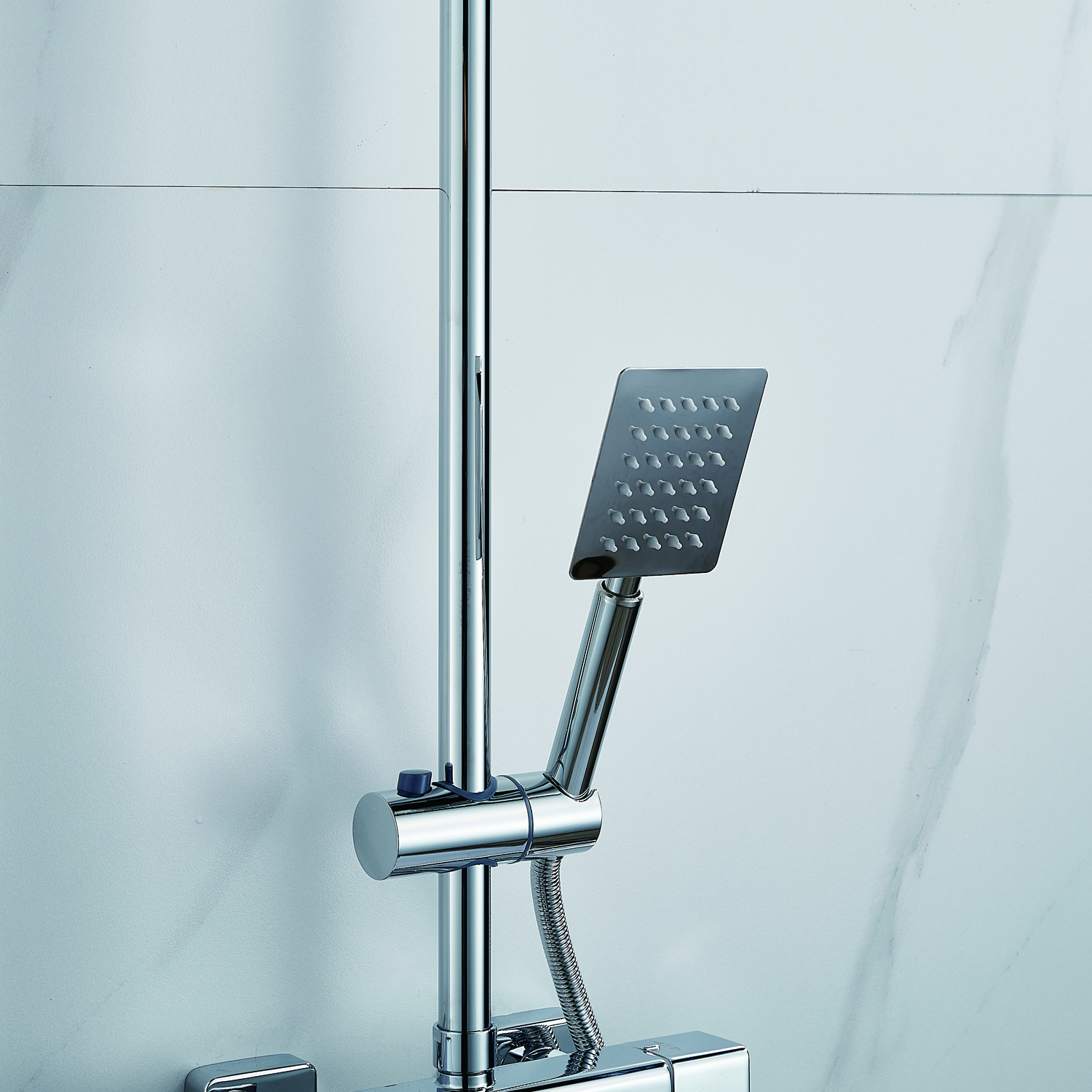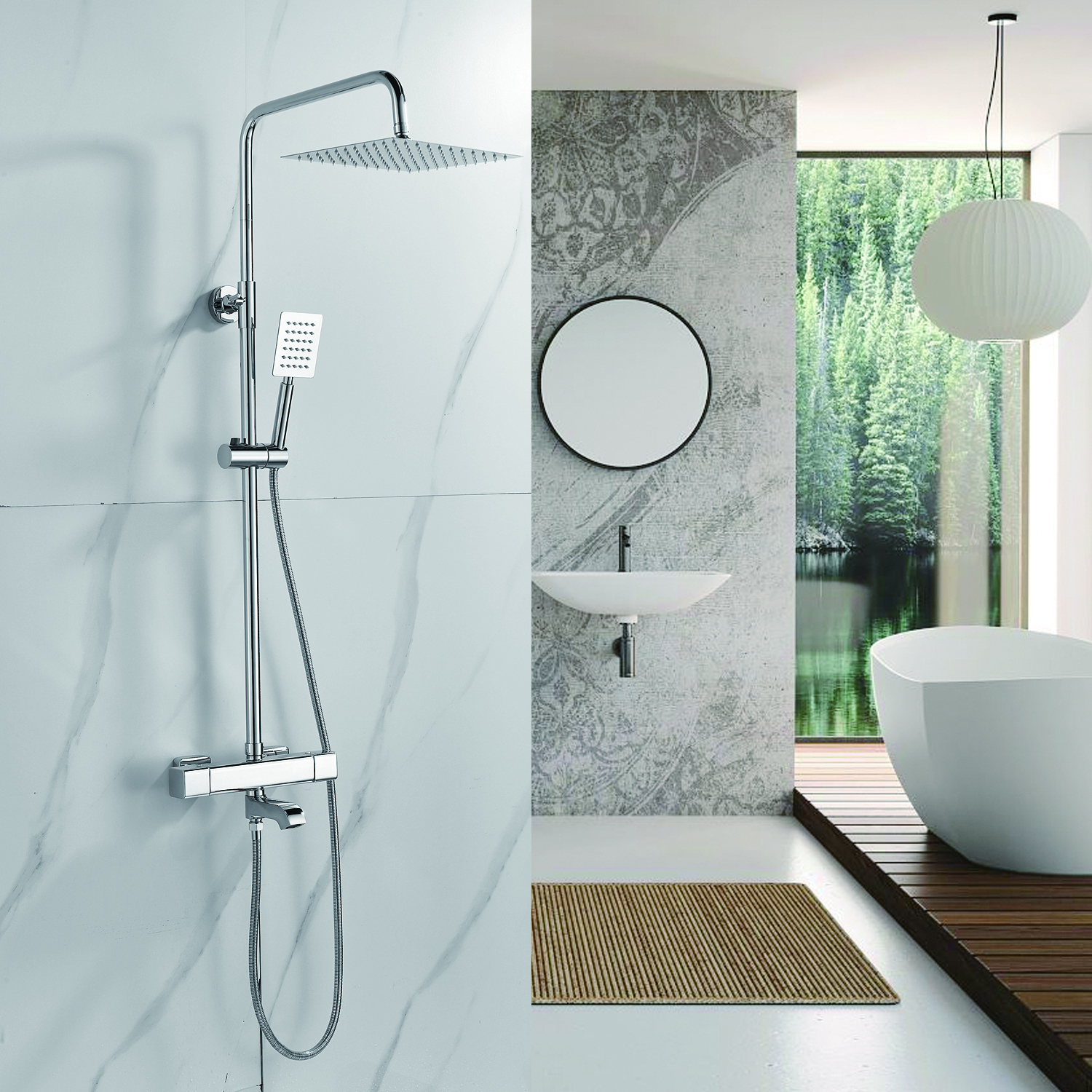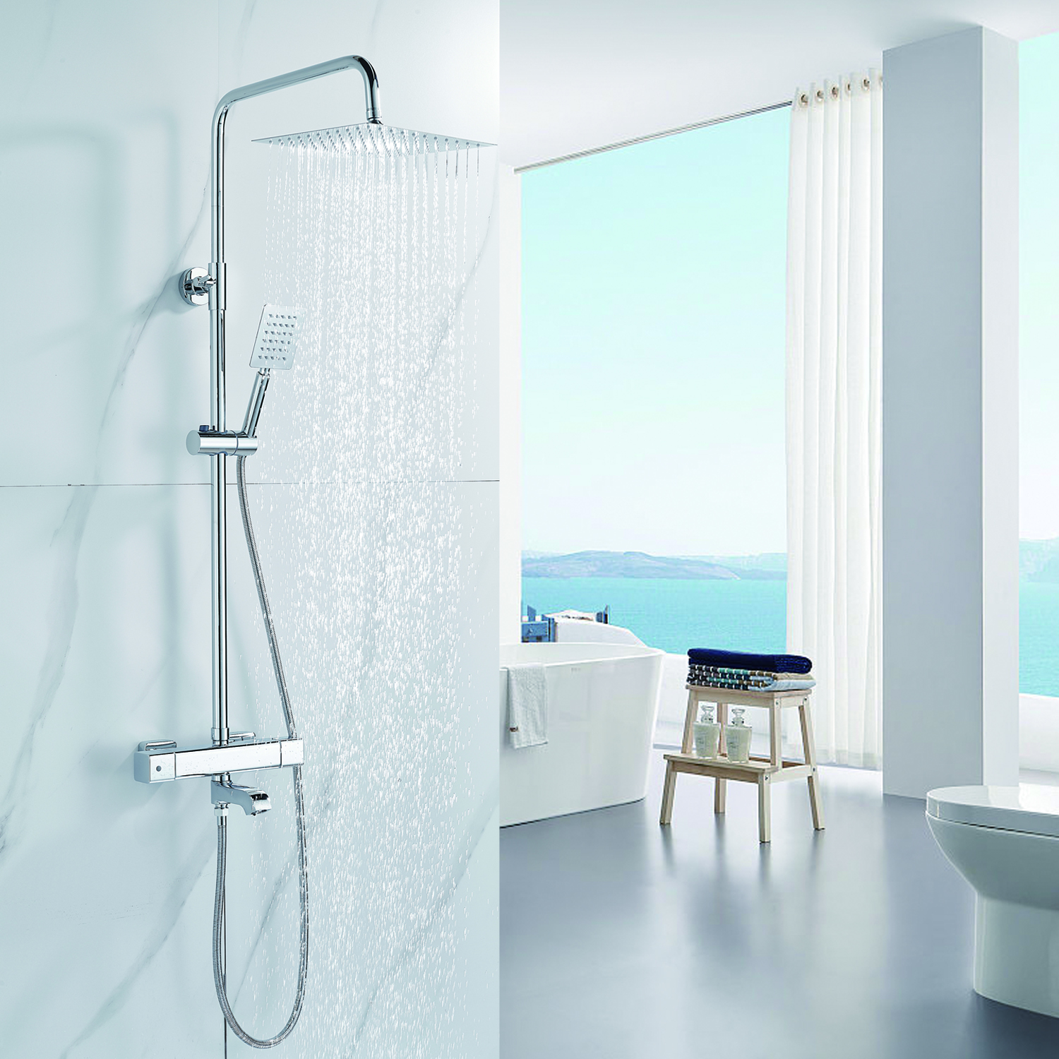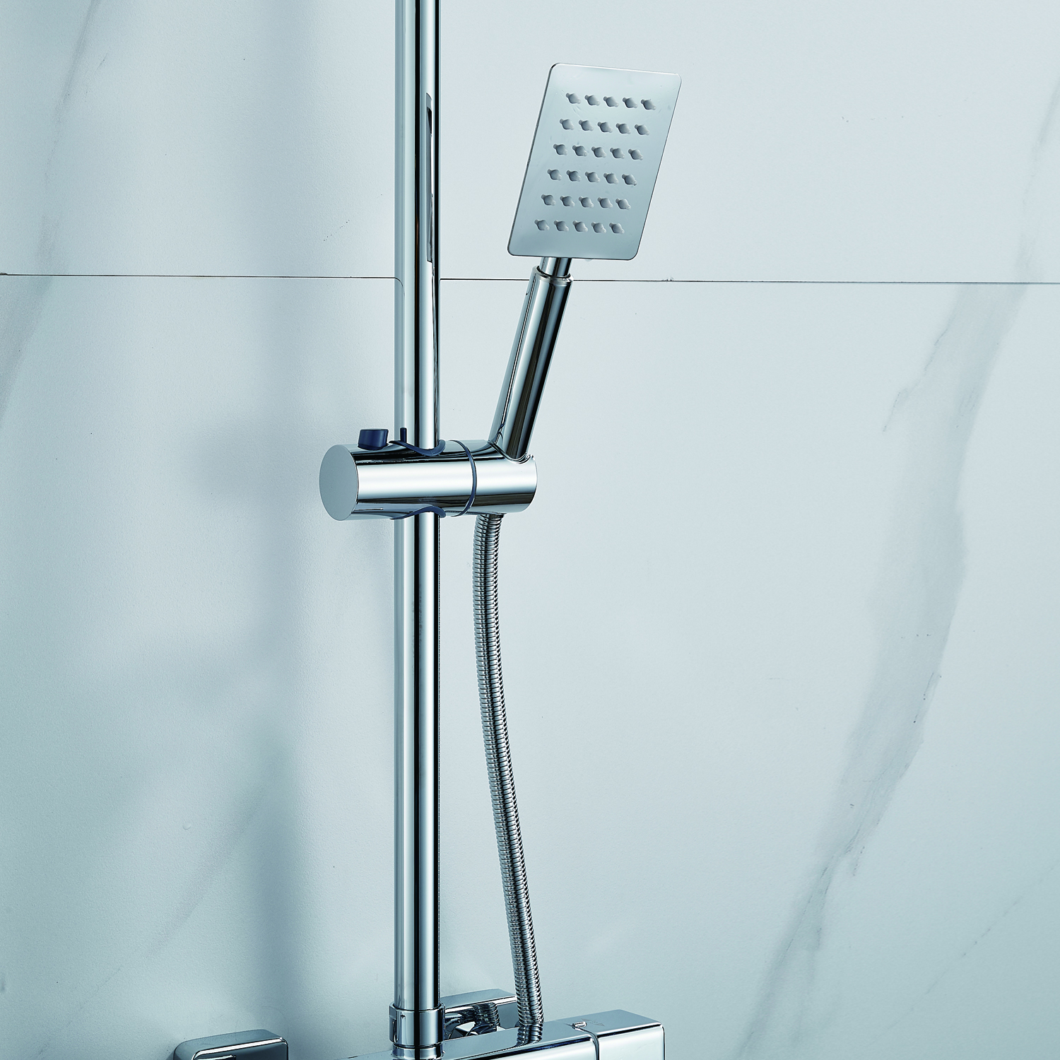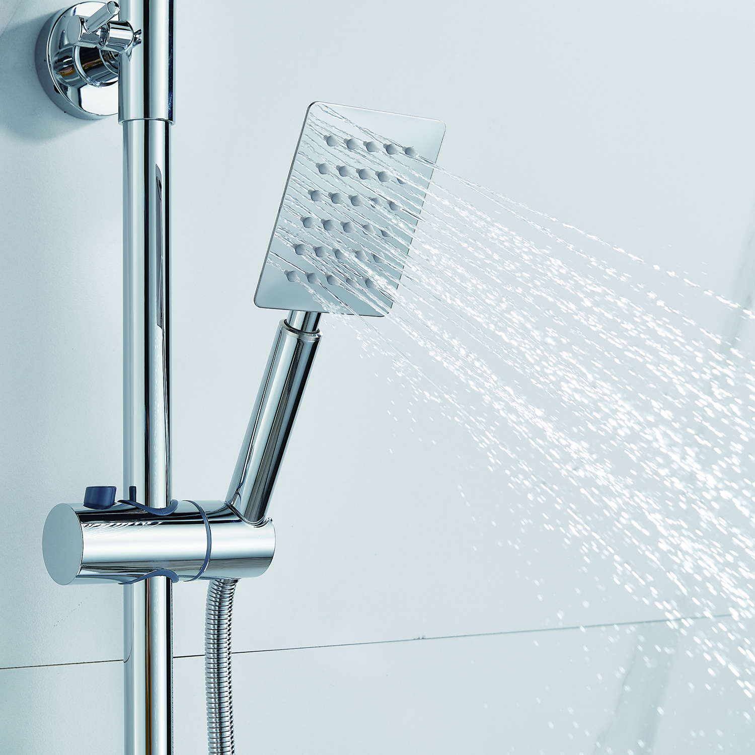 | Комплектация | смеситель, душевая стойка, верхний душ, душевая лейка, душевой шланг, держатель для душевой лейки, настенный держатель, отражатели, эксцентрики |