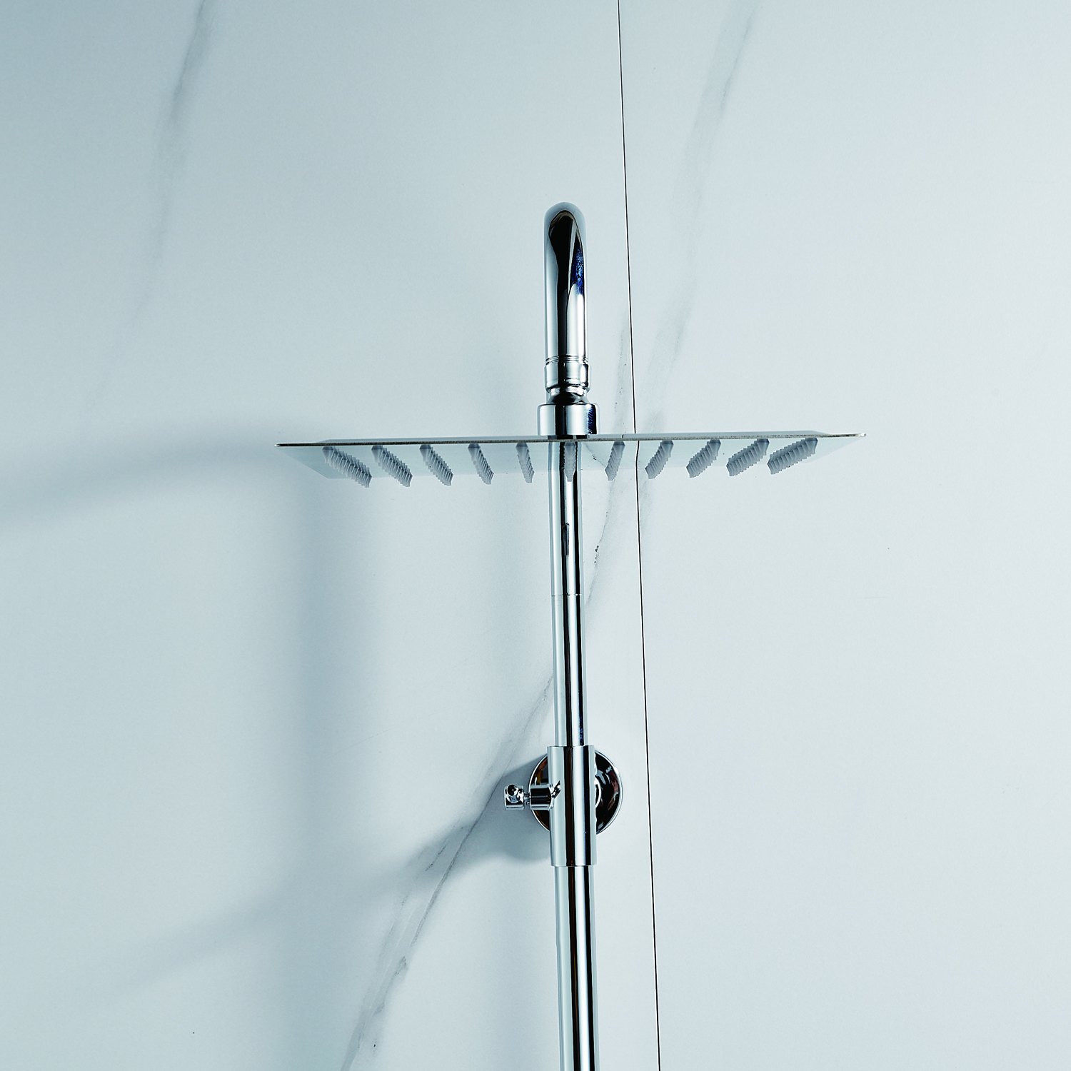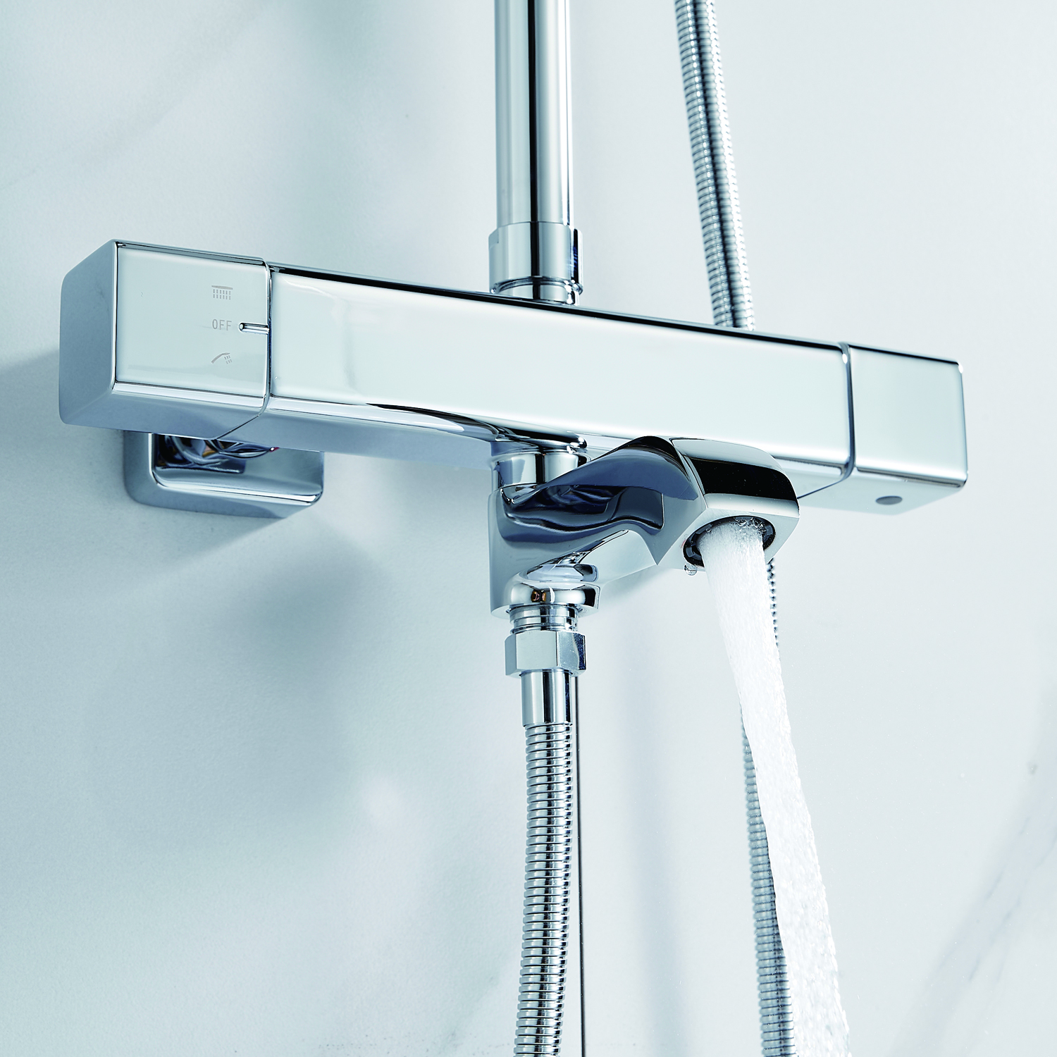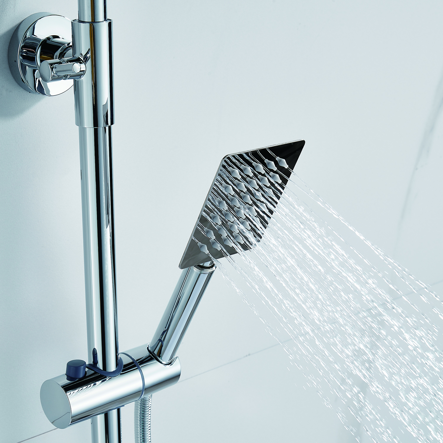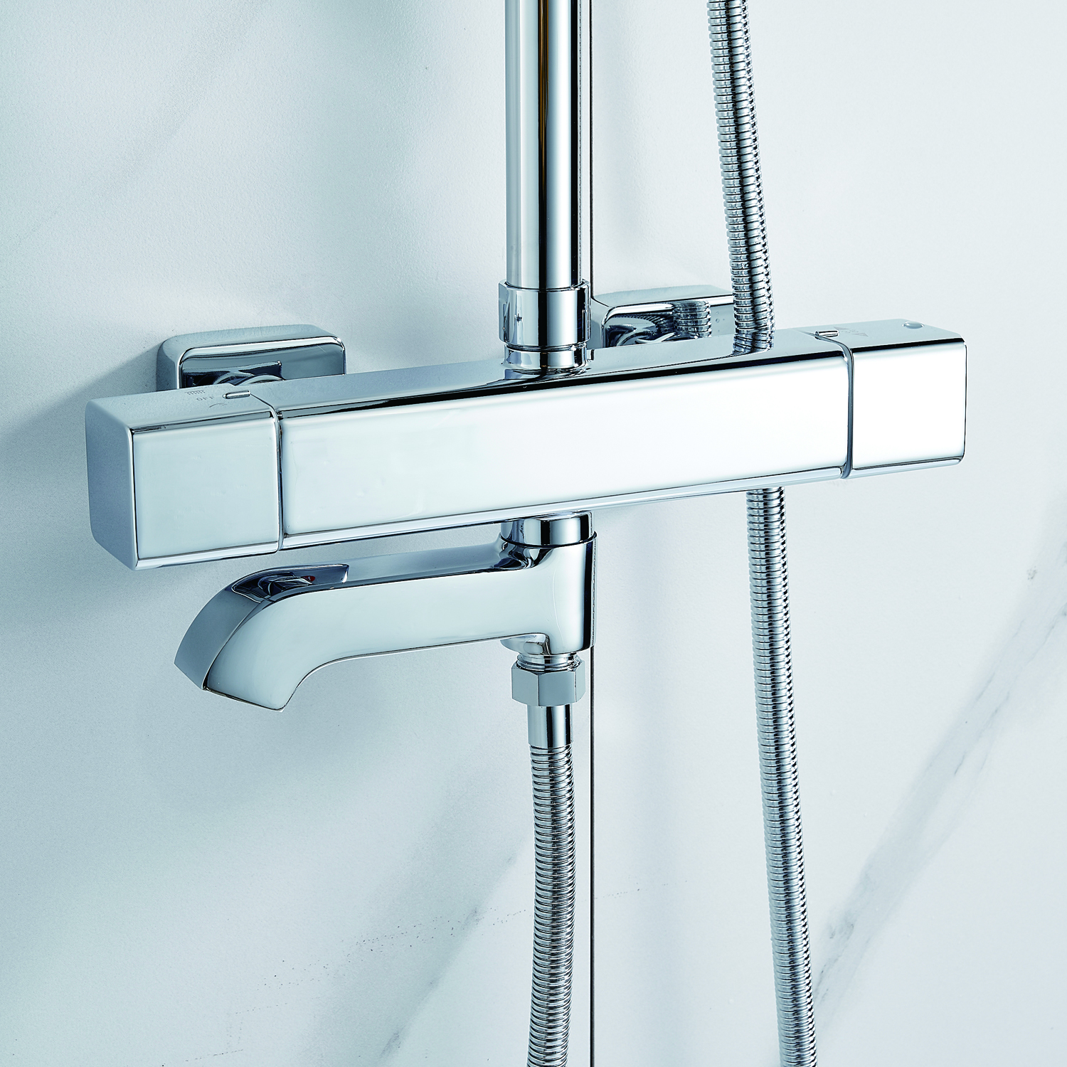 | Комплектация | смеситель, душевая стойка, верхний душ, душевая лейка, душевой шланг, держатель для душевой лейки, настенный держатель, отражатели, эксцентрики |
