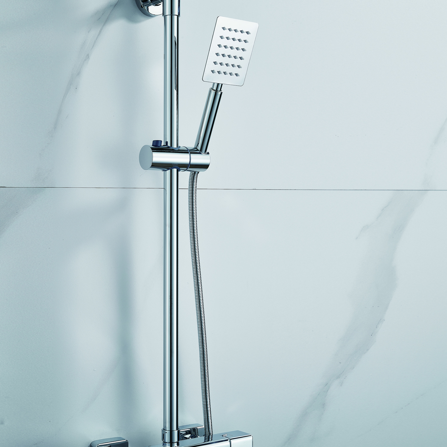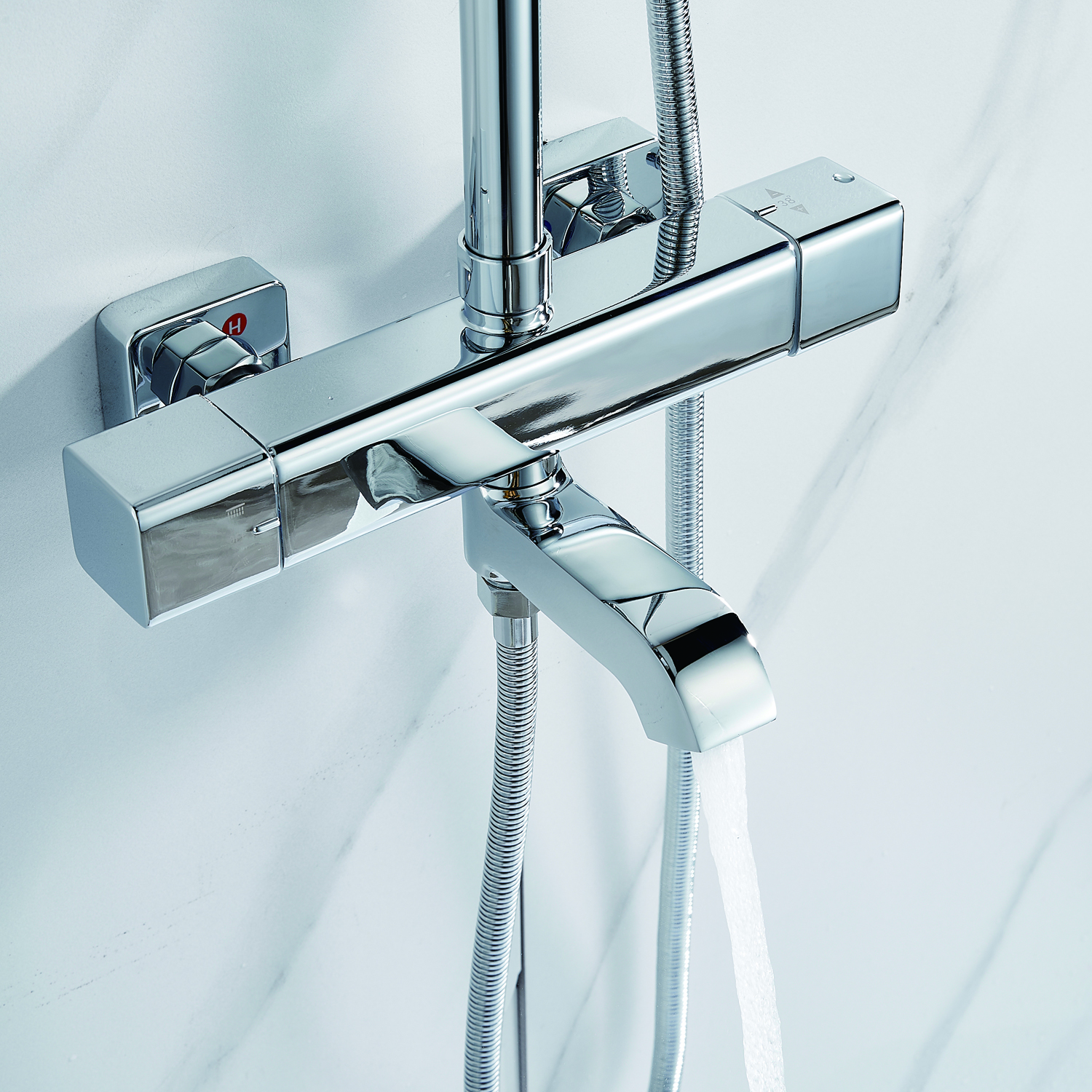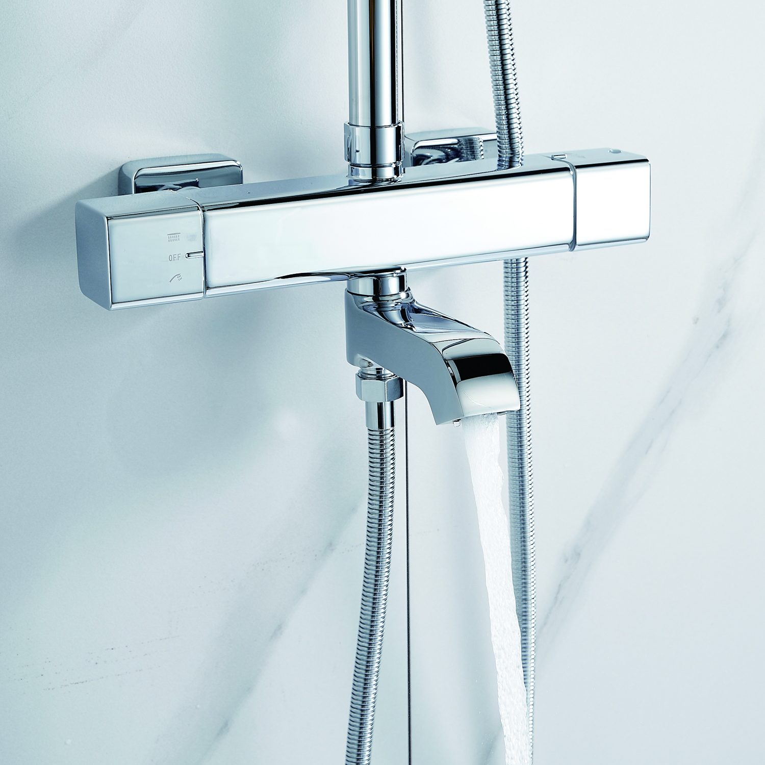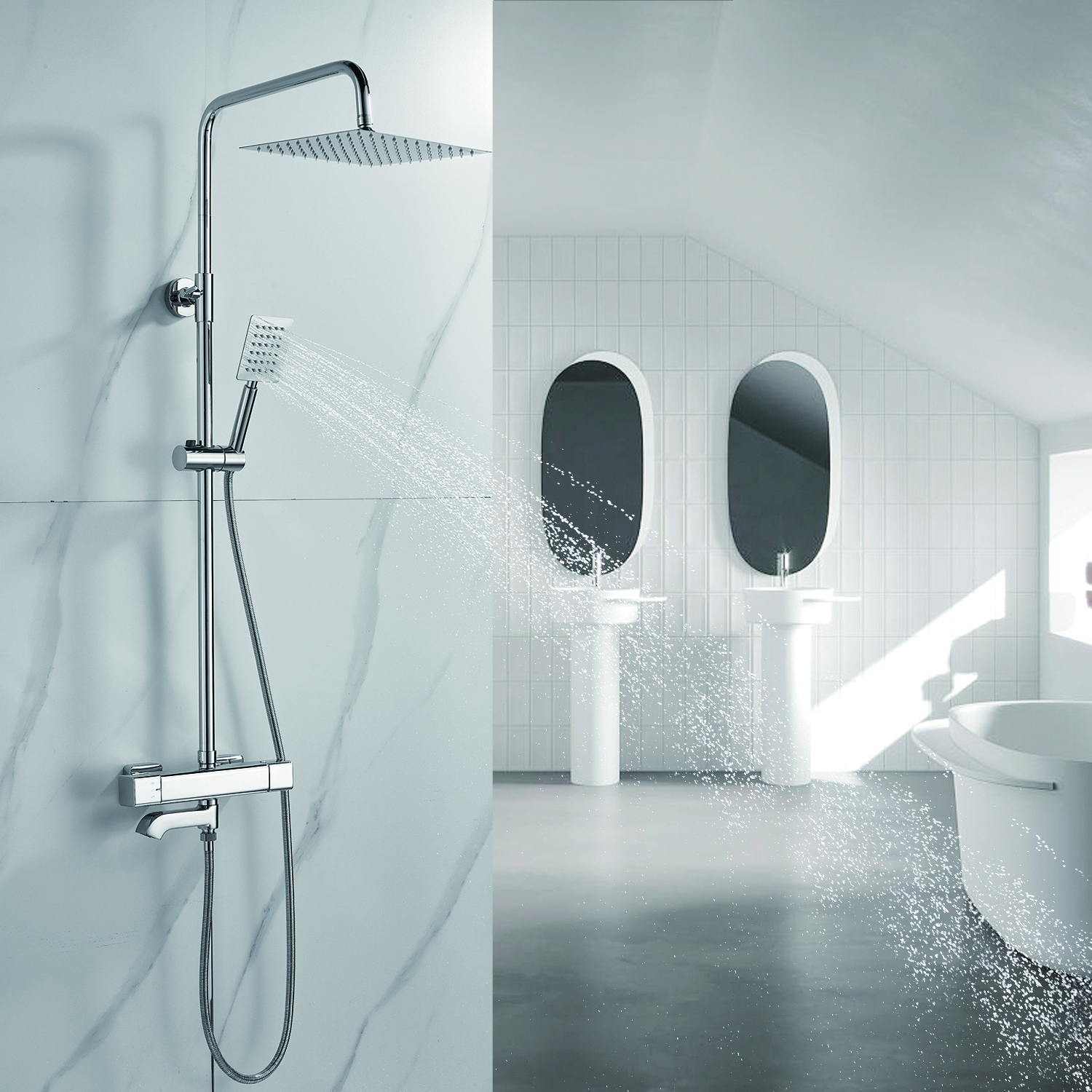 | Комплектация | смеситель, душевая стойка, верхний душ, душевая лейка, душевой шланг, держатель для душевой лейки, настенный держатель, отражатели, эксцентрики |