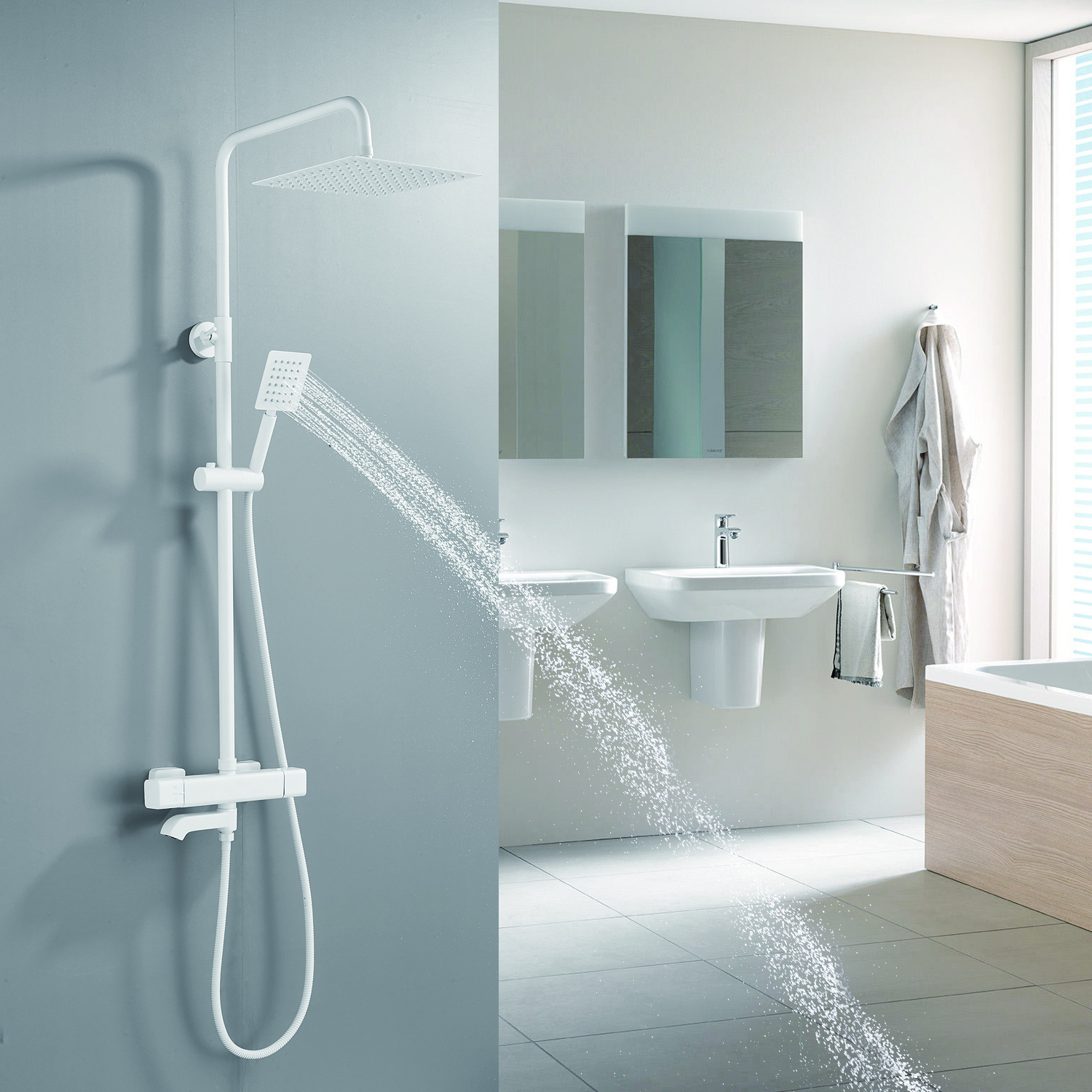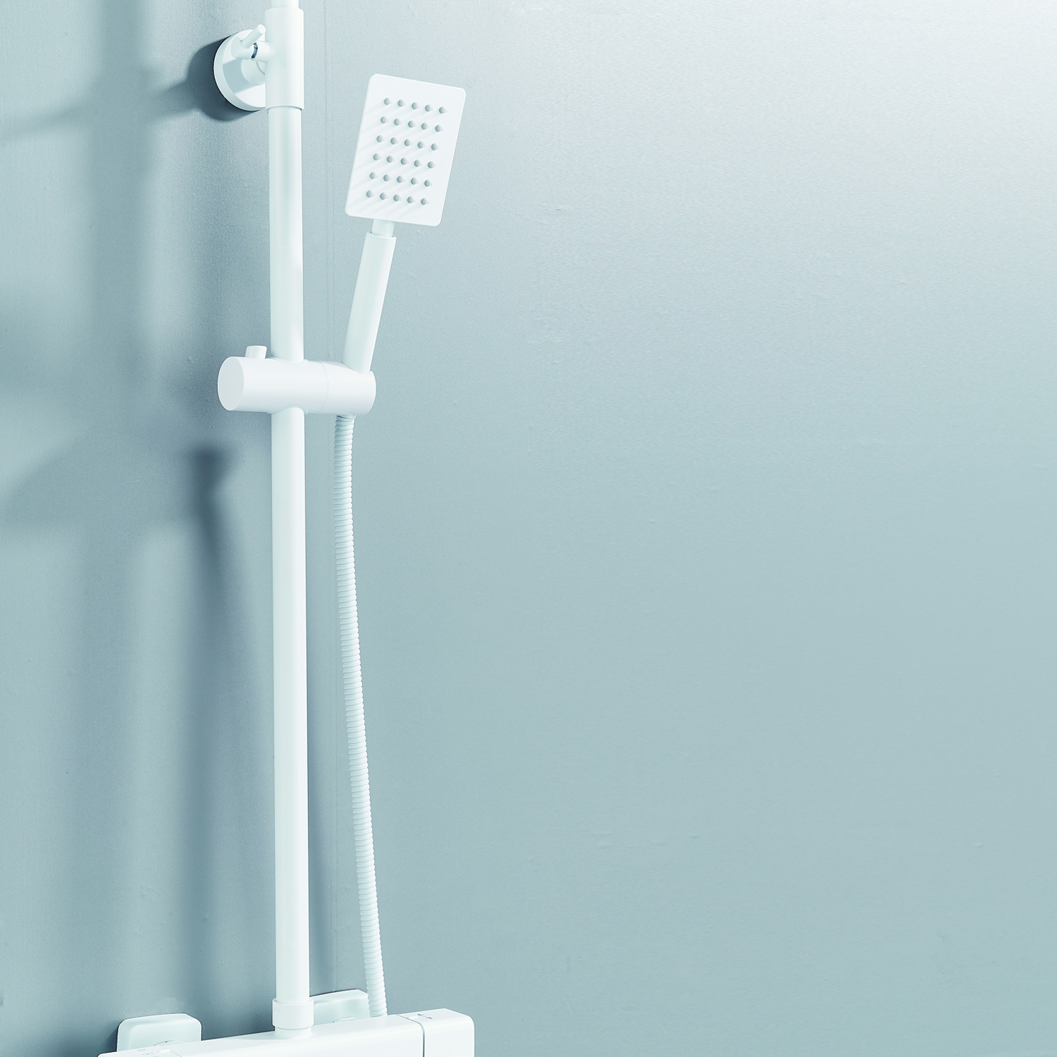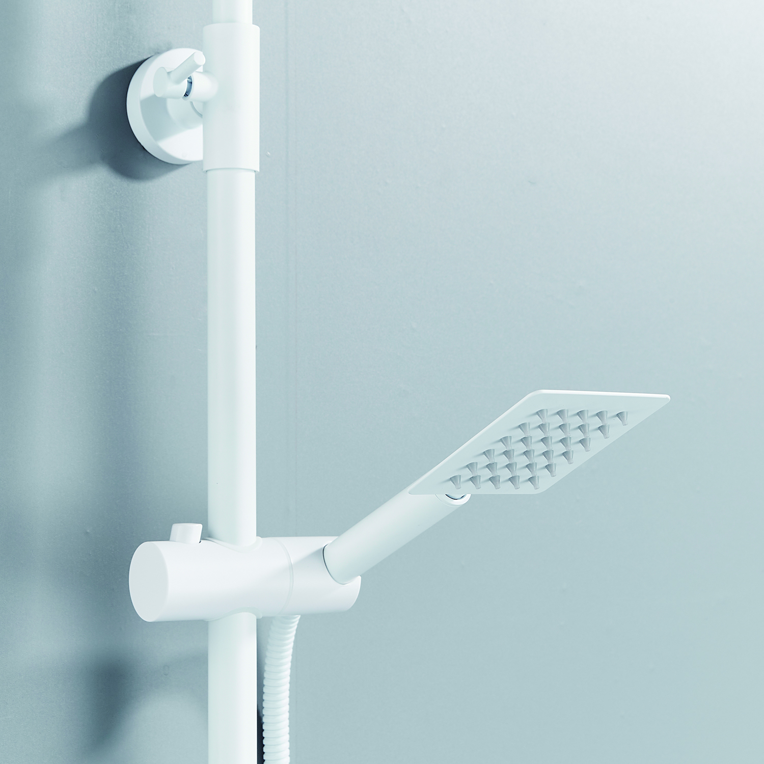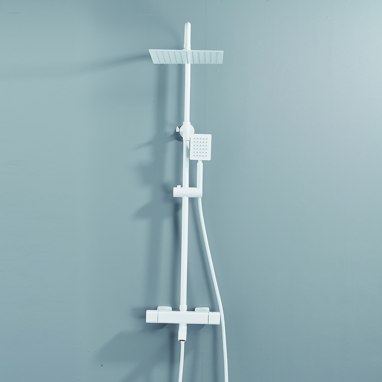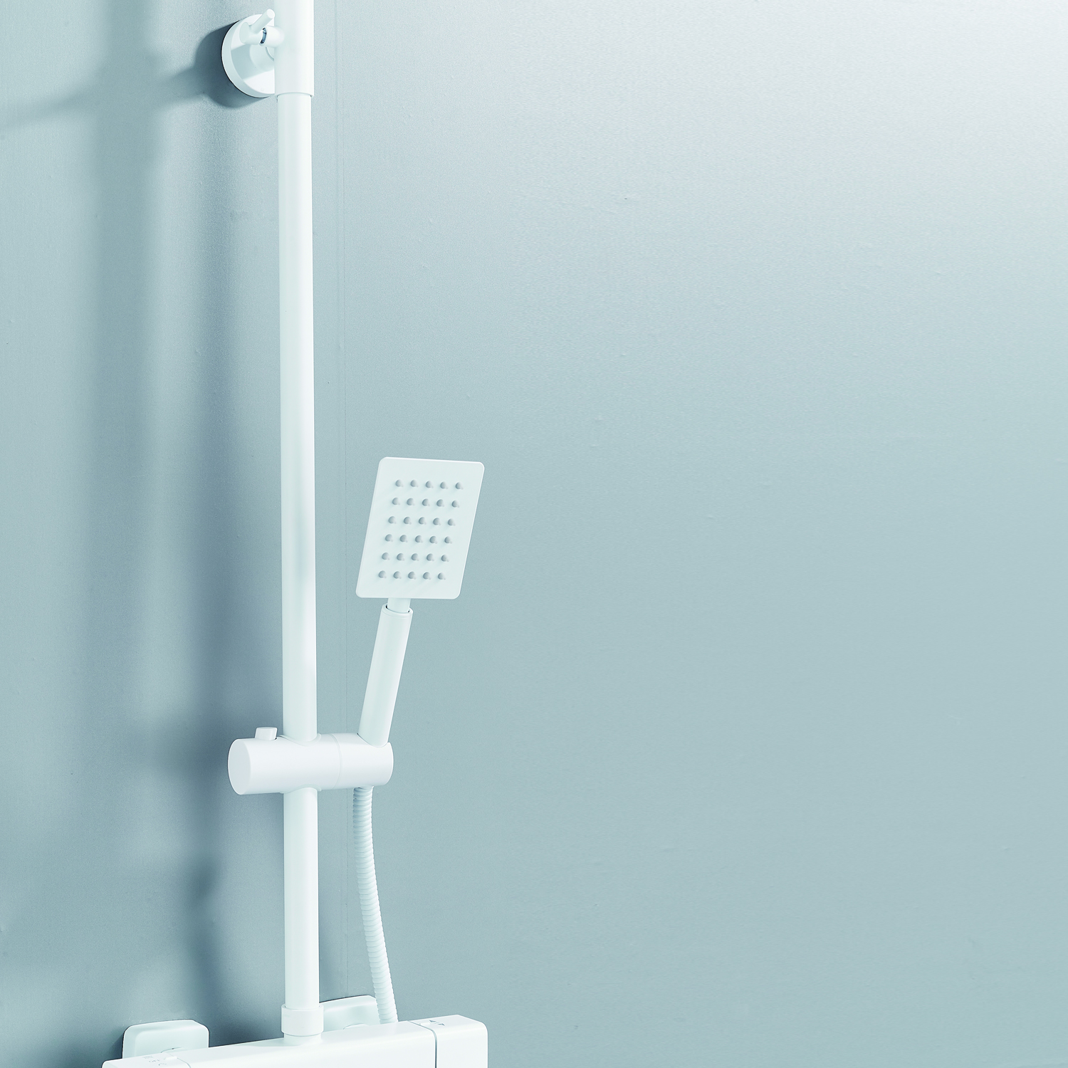 | Комплектация | смеситель, душевая стойка, верхний душ, душевая лейка, душевой шланг, держатель для душевой лейки, настенный держатель, отражатели, эксцентрики |