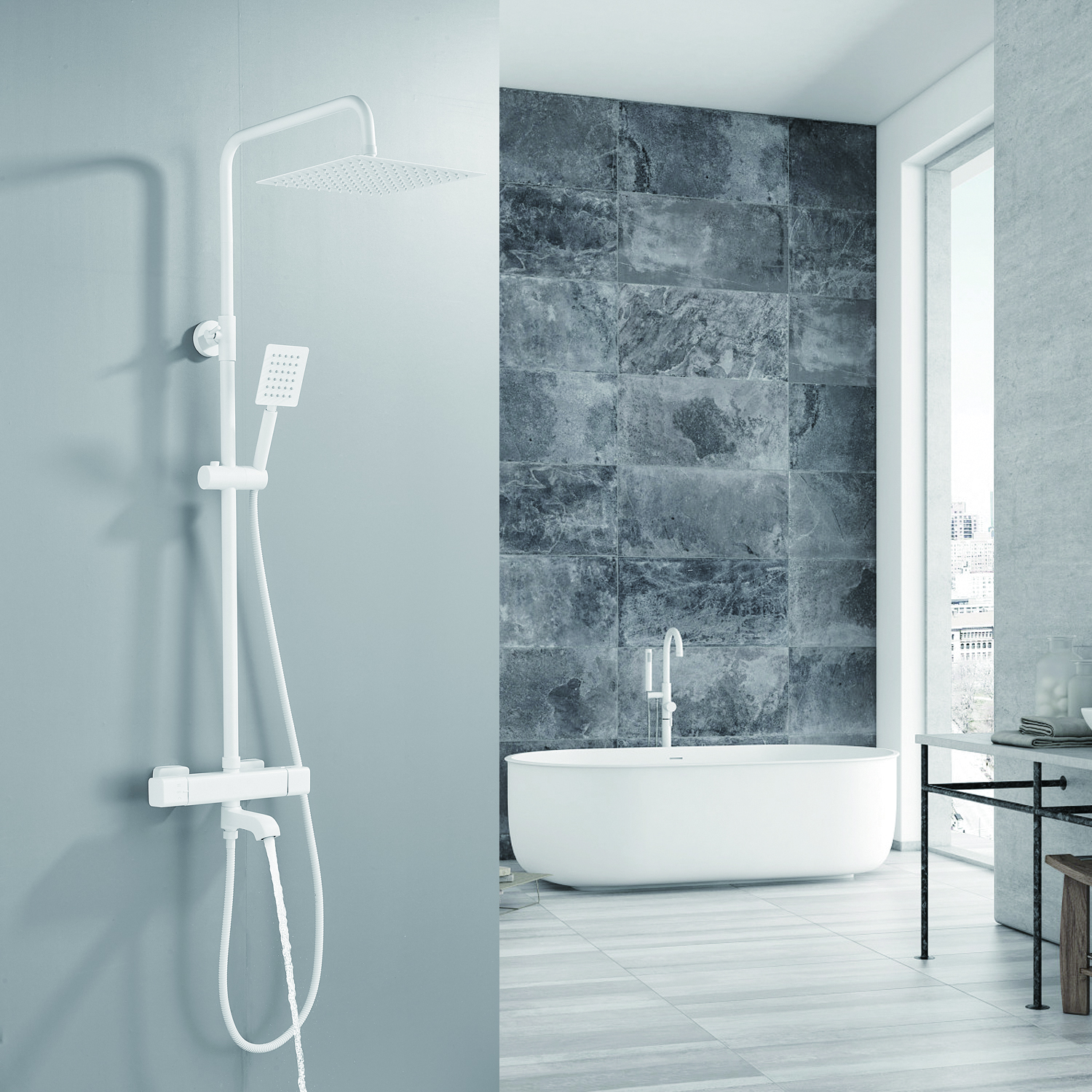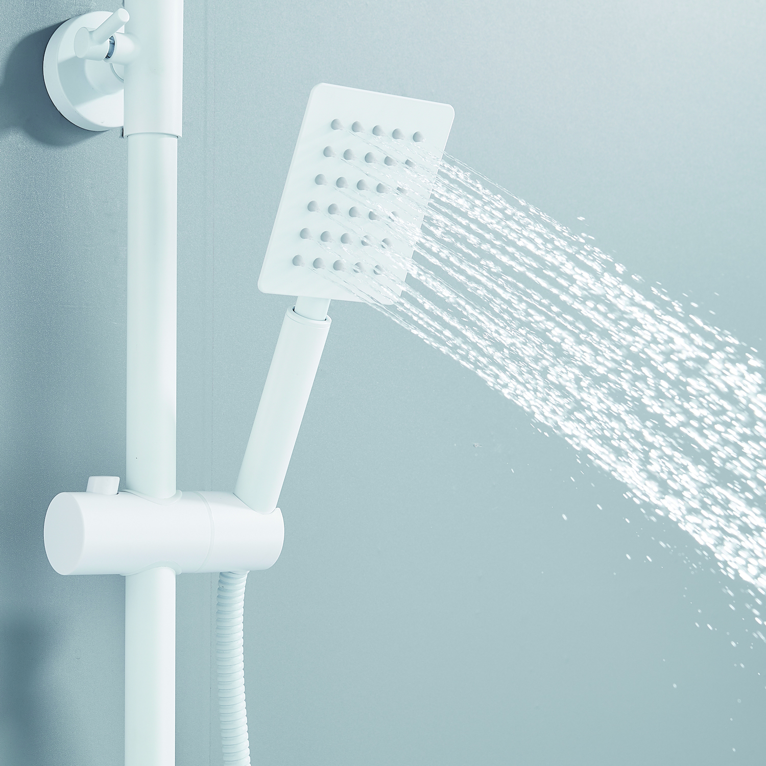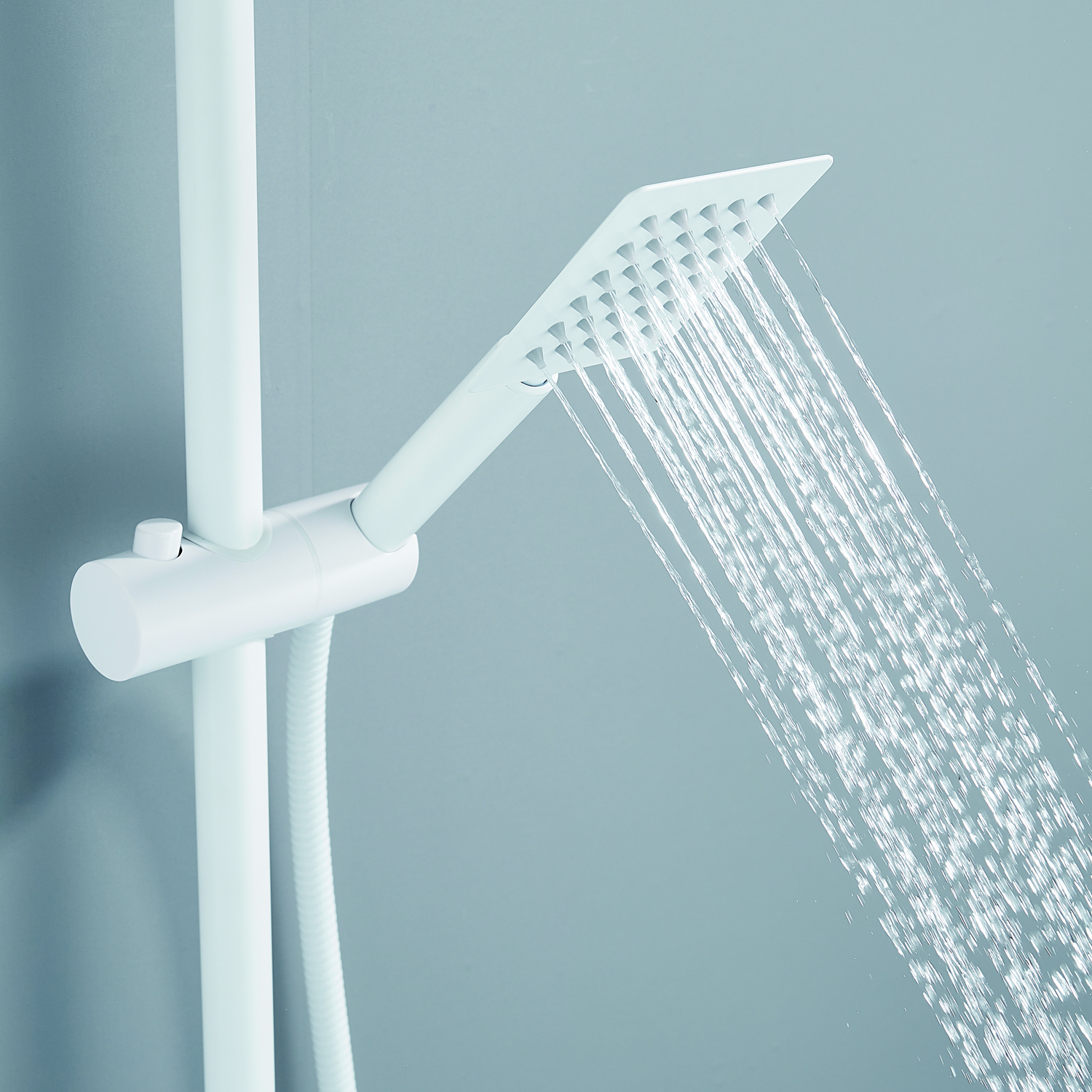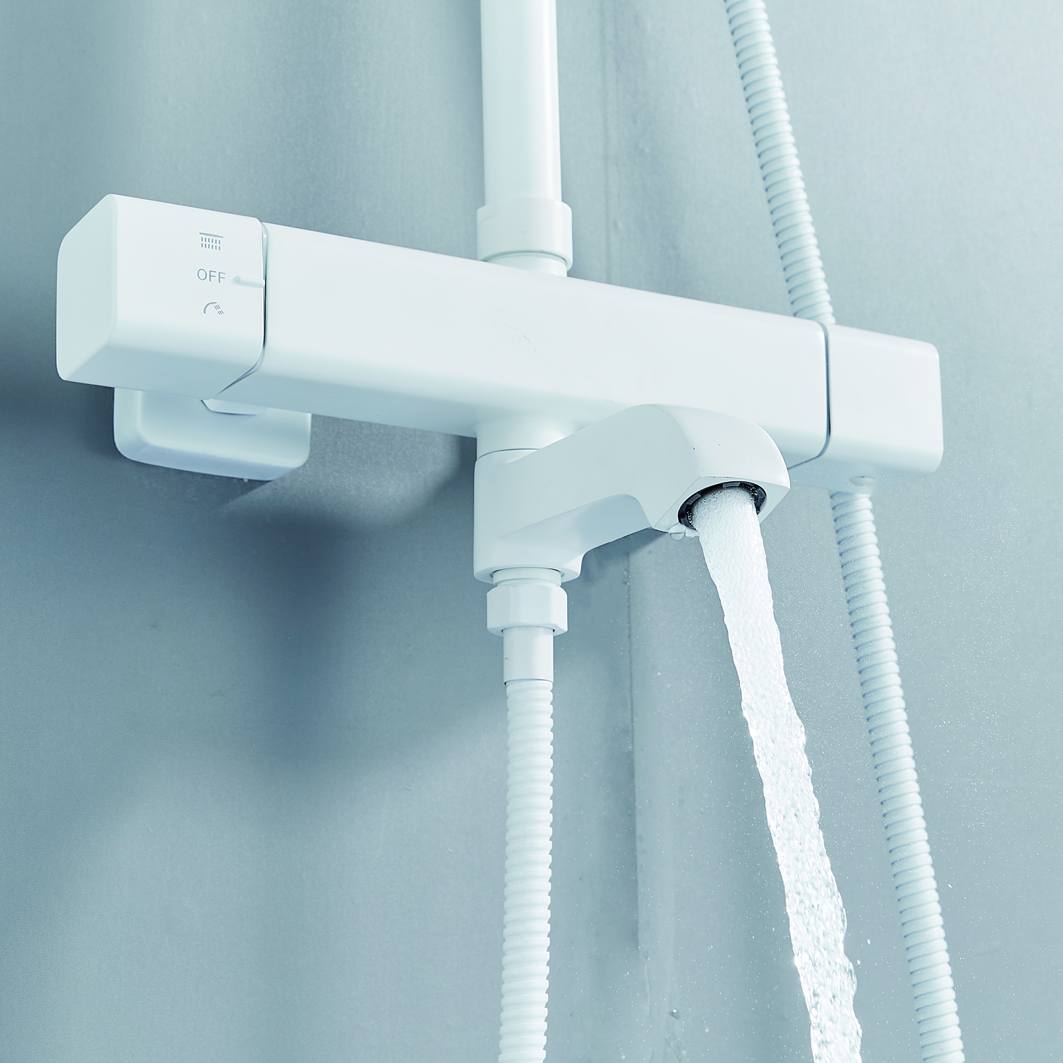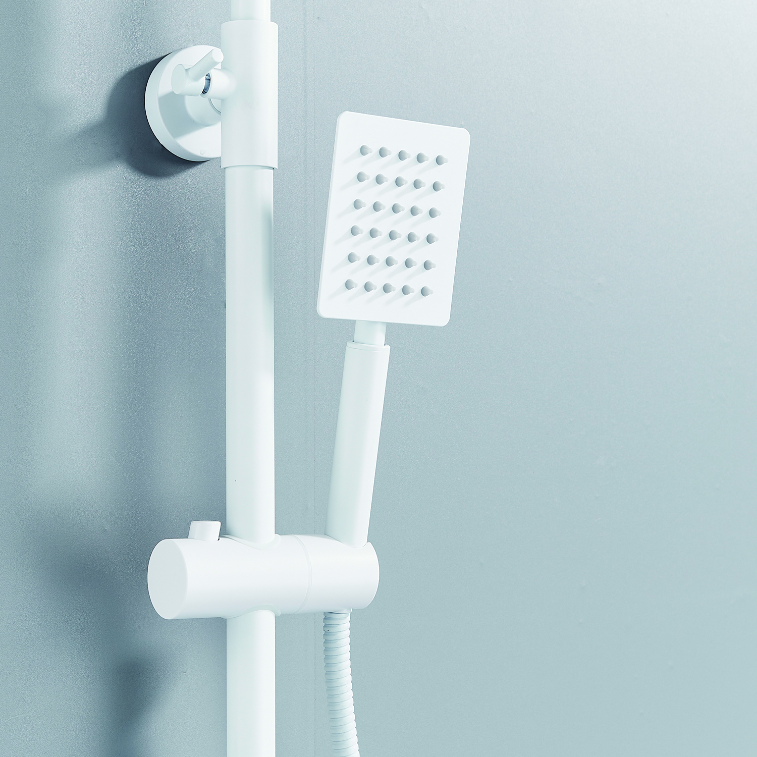 | Комплектация | смеситель, душевая стойка, верхний душ, душевая лейка, душевой шланг, держатель для душевой лейки, настенный держатель, отражатели, эксцентрики |