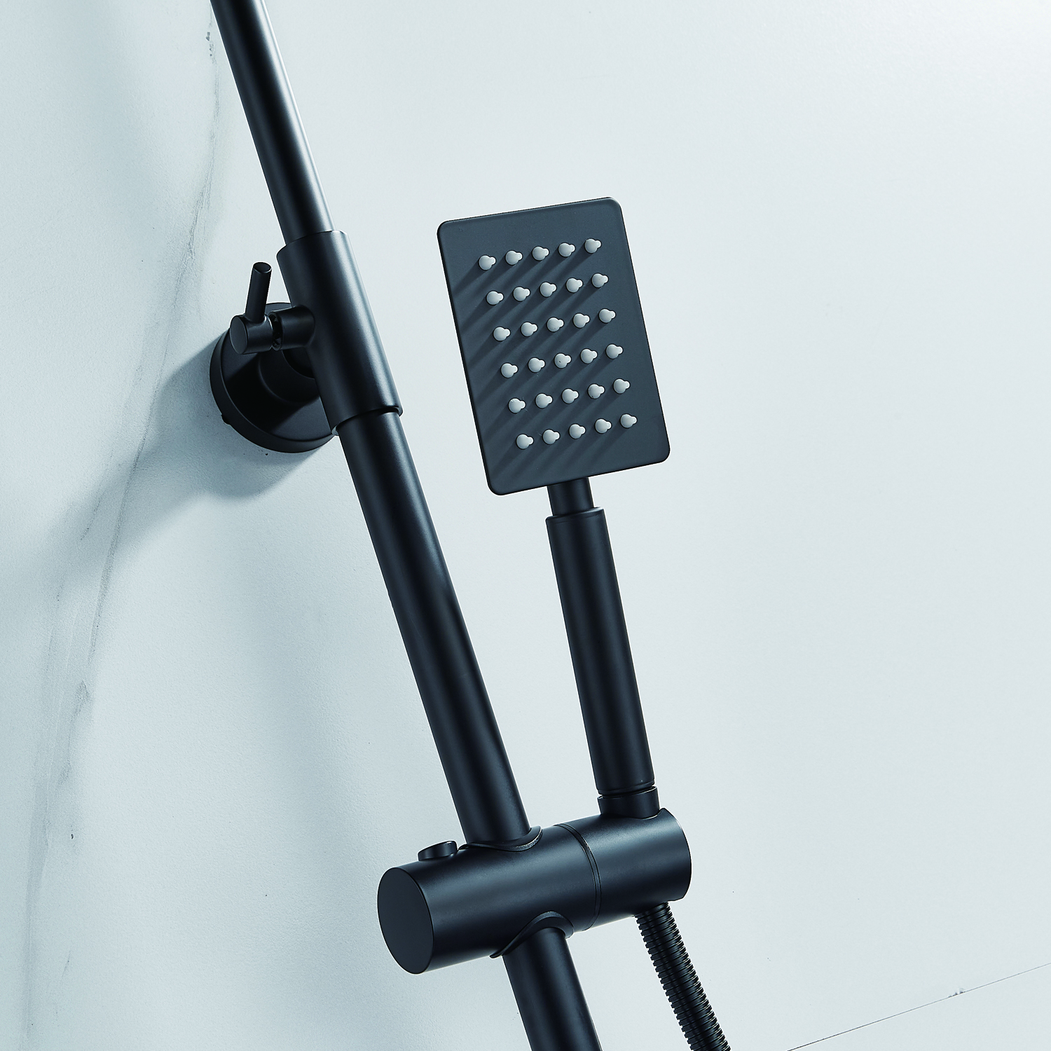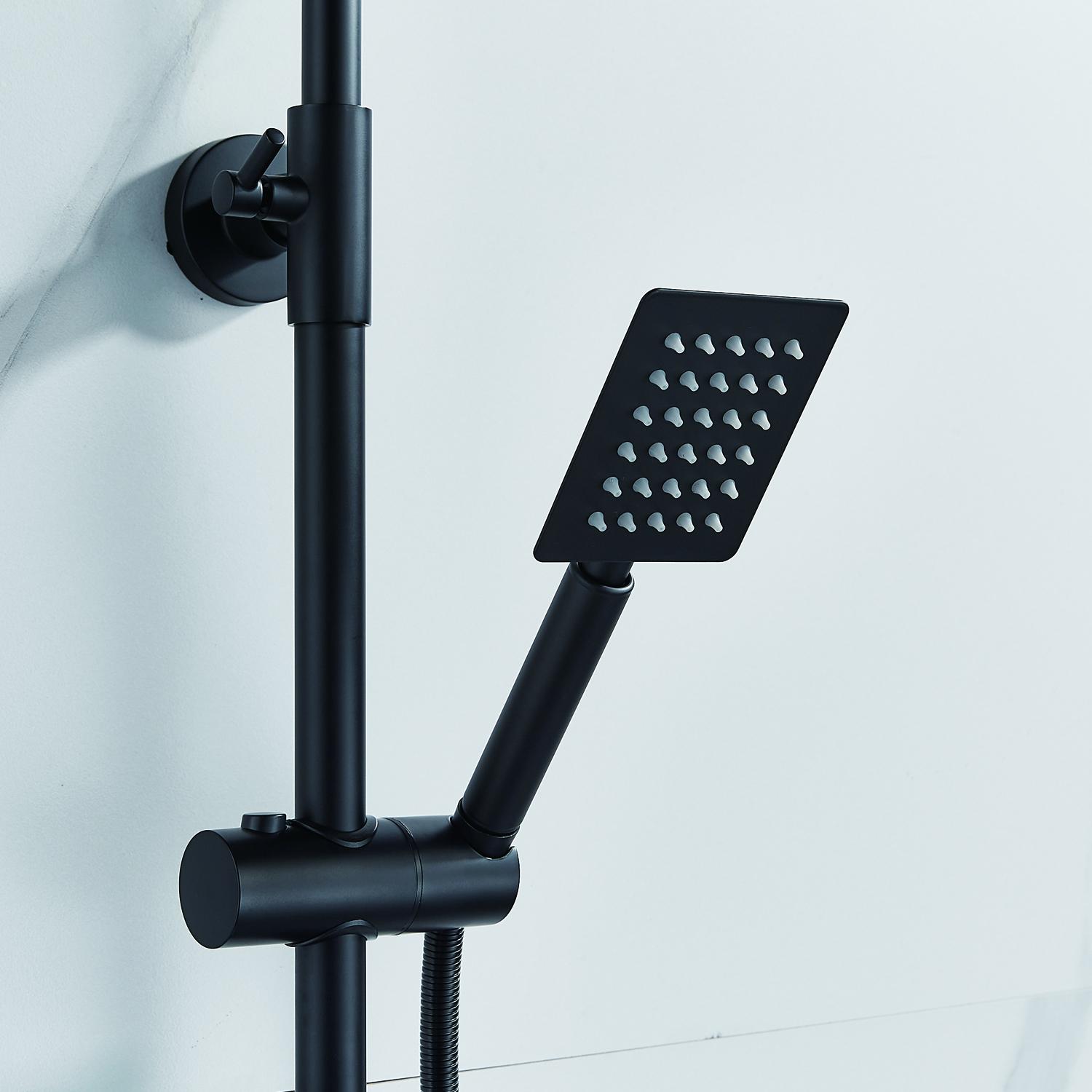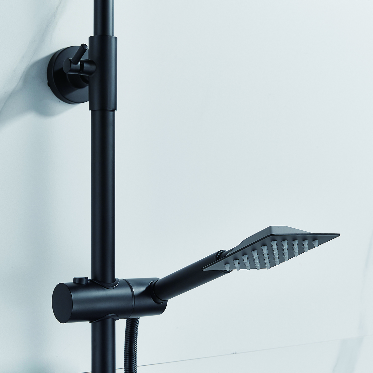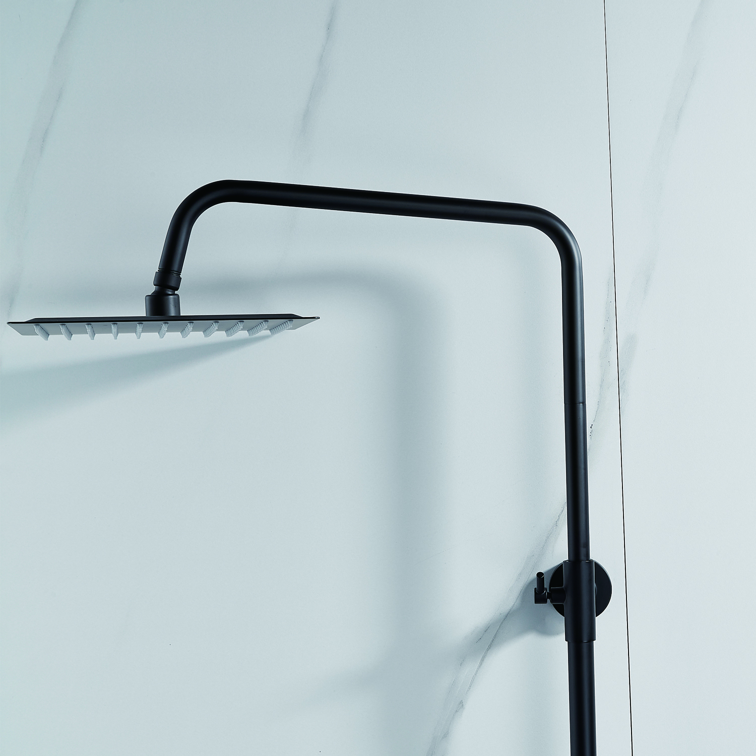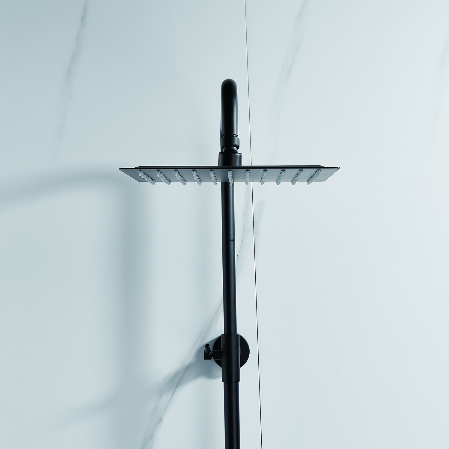 | Комплектация | смеситель, душевая стойка, верхний душ, душевая лейка, душевой шланг, держатель для душевой лейки, настенный держатель, отражатели, эксцентрики |