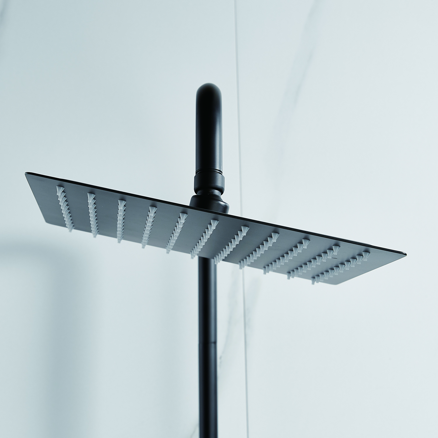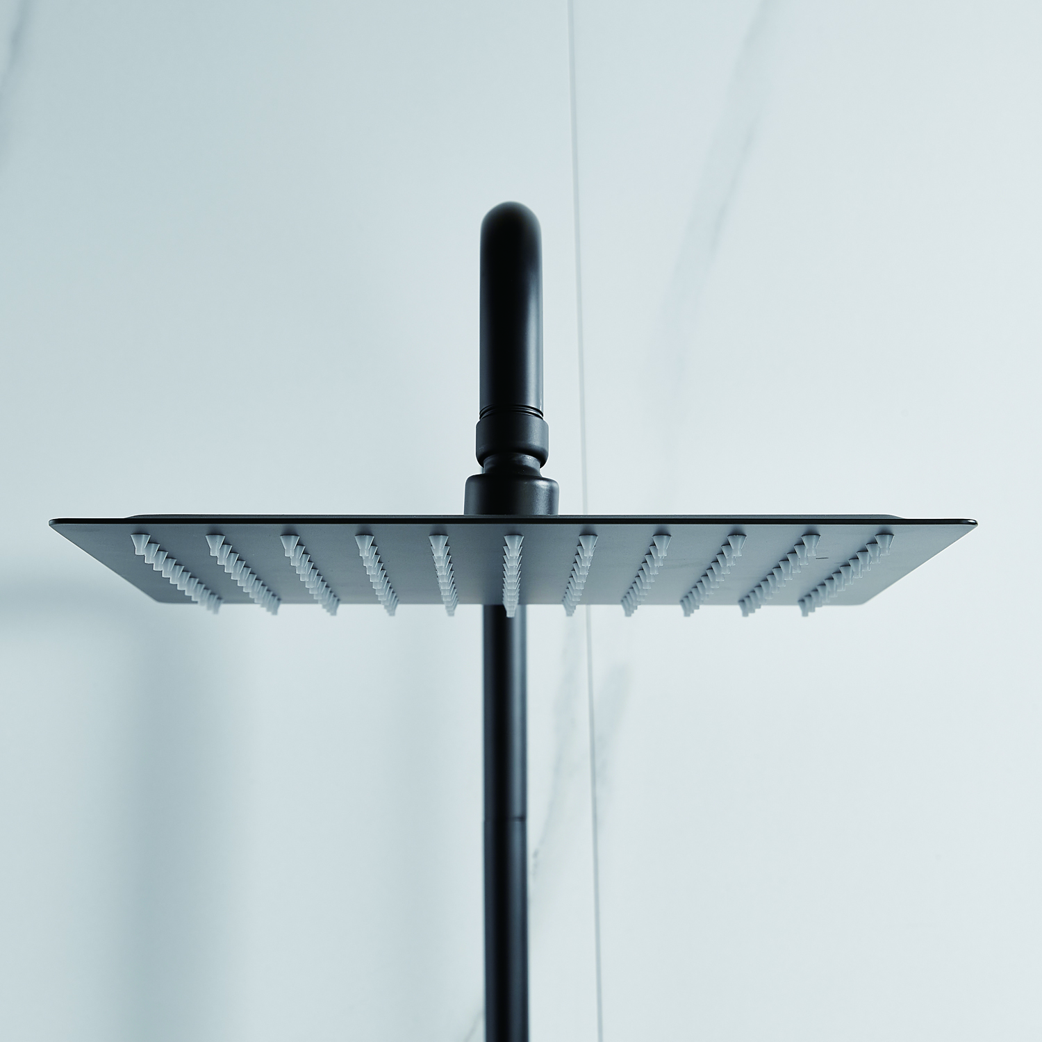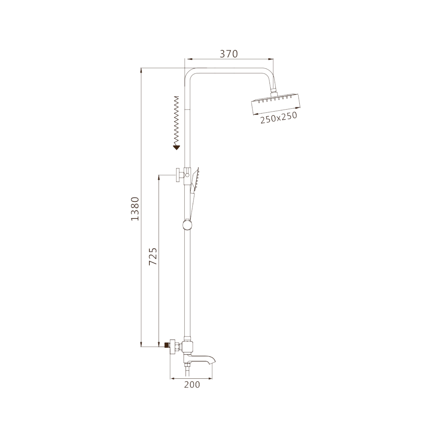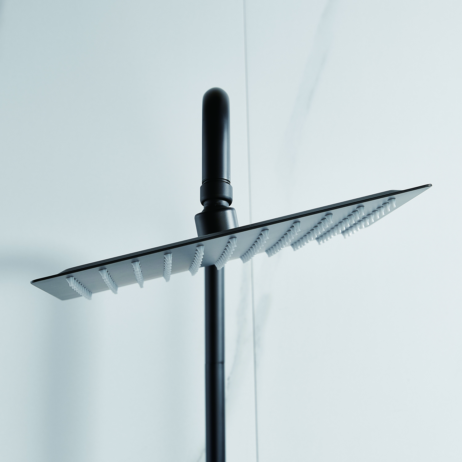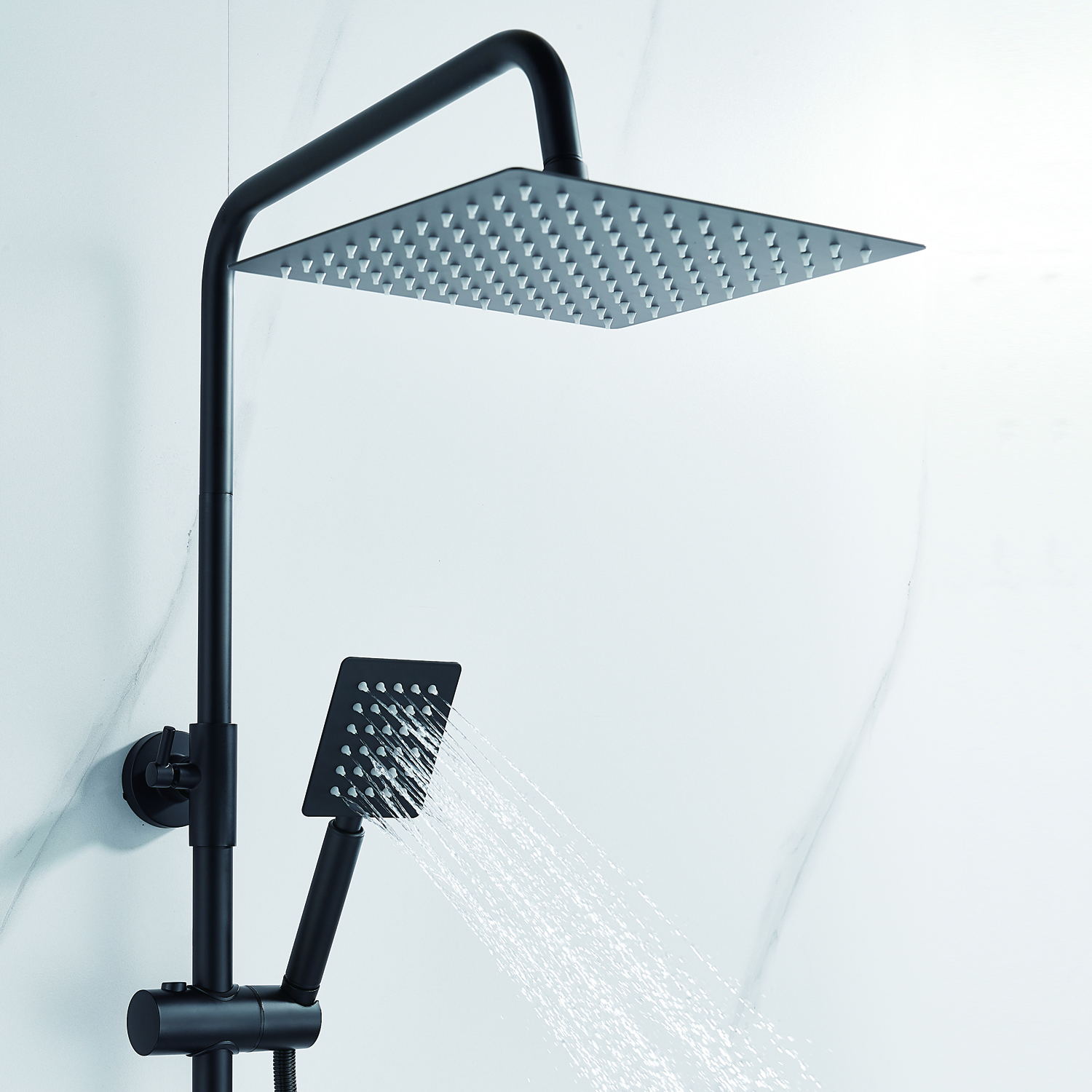 | Комплектация | смеситель, душевая стойка, верхний душ, душевая лейка, душевой шланг, держатель для душевой лейки, настенный держатель, отражатели, эксцентрики |