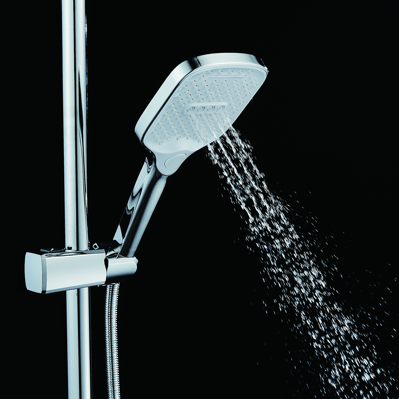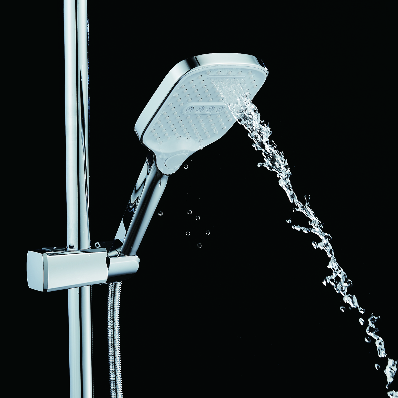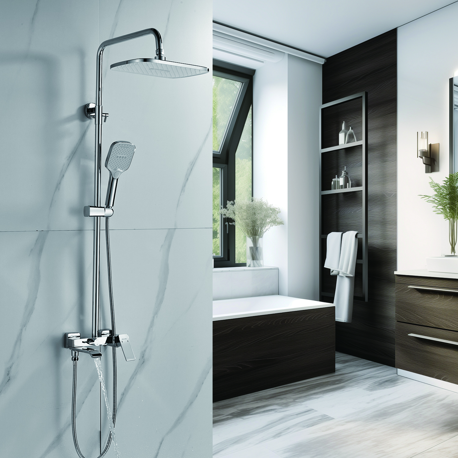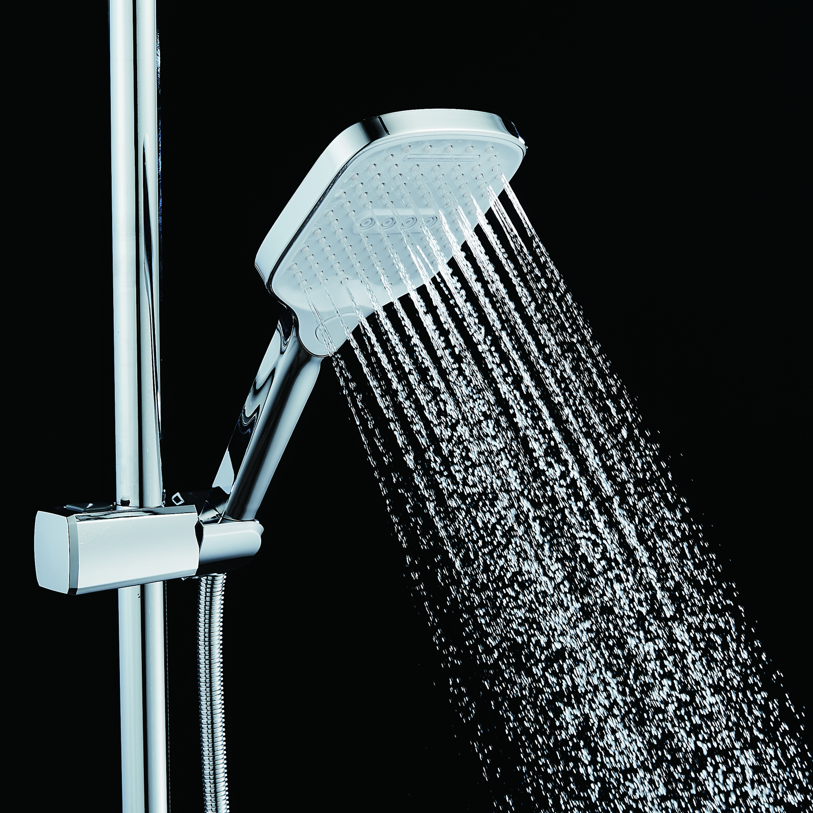 | Комплектация | смеситель, душевая стойка, верхний душ, душевая лейка, душевой шланг, держатель для душевой лейки, настенный держатель, отражатели, эксцентрики |