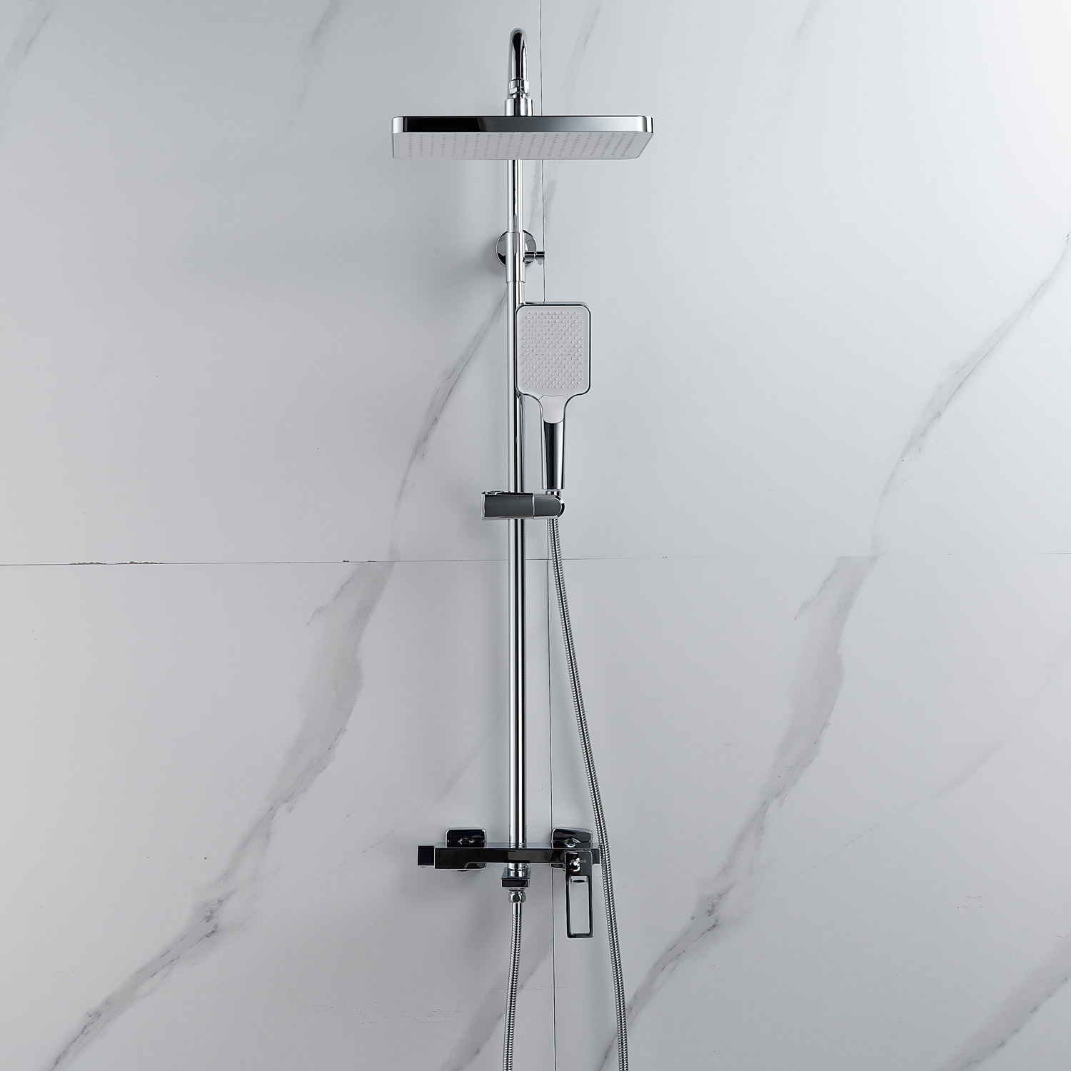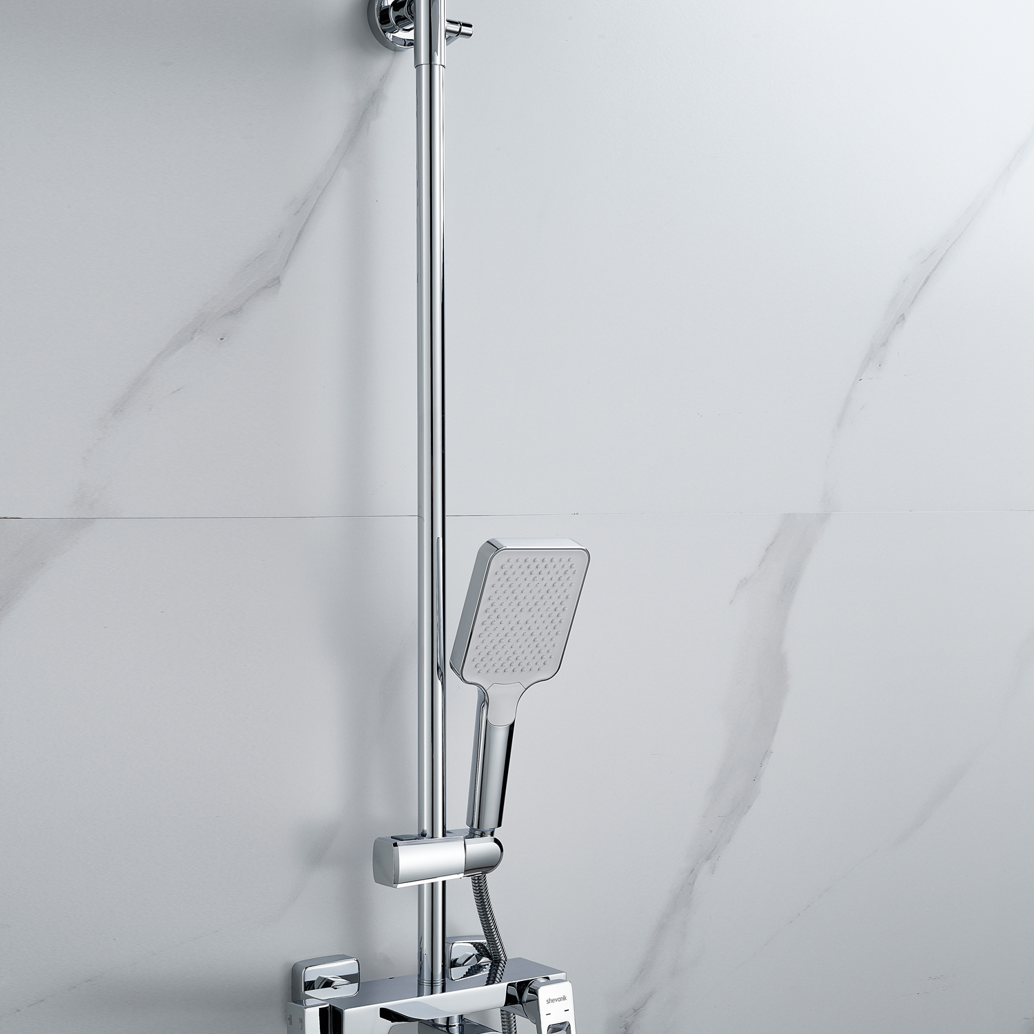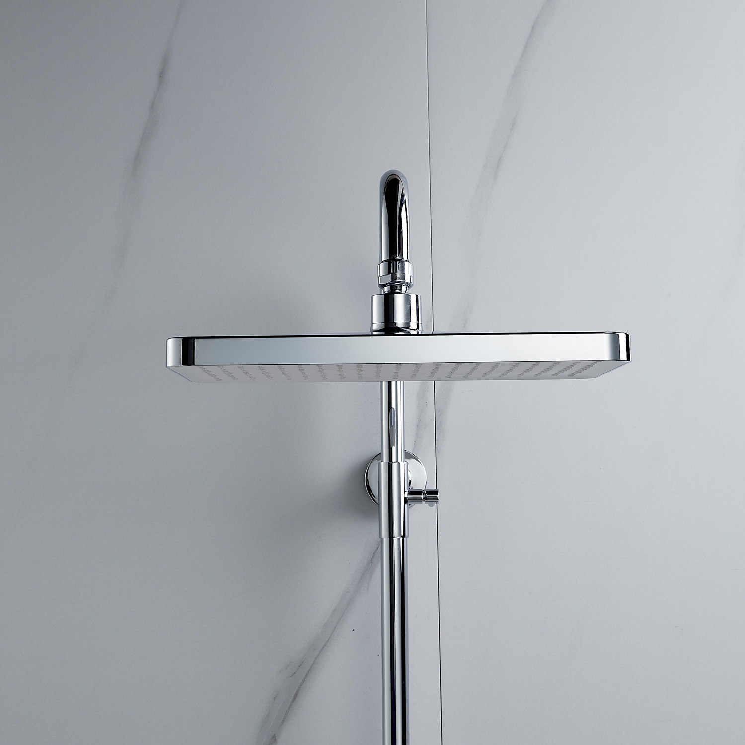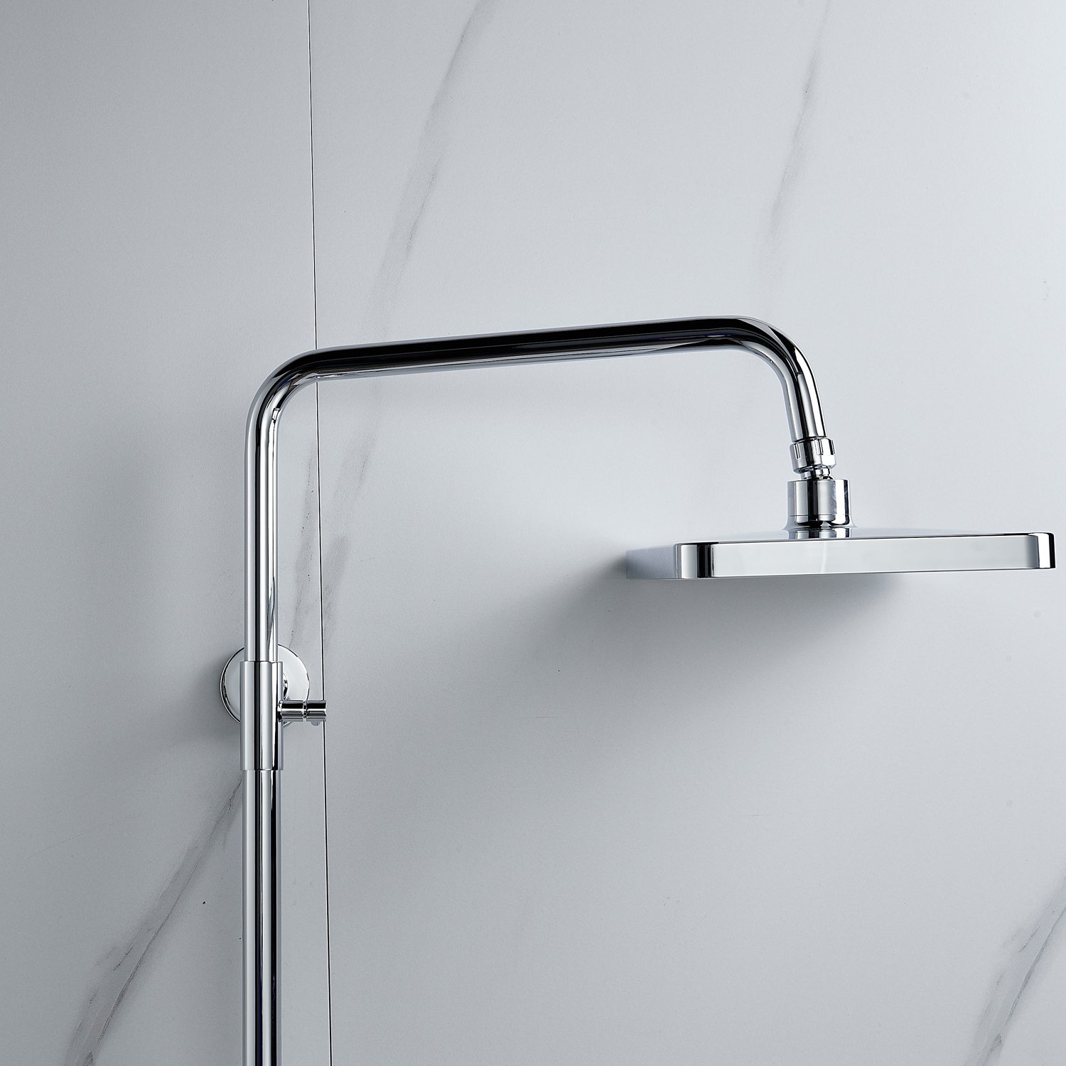 | Комплектация | смеситель, душевая стойка, верхний душ, душевая лейка, душевой шланг, держатель для душевой лейки, настенный держатель, отражатели, эксцентрики |