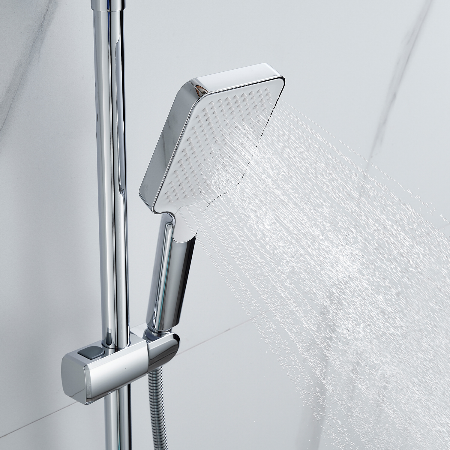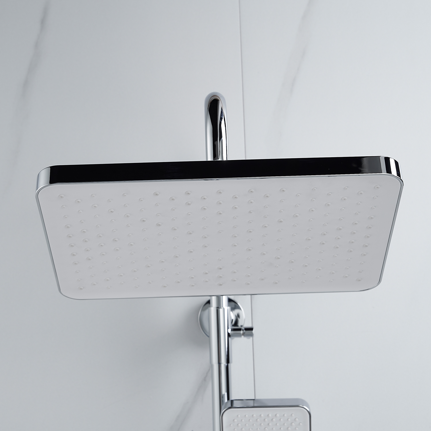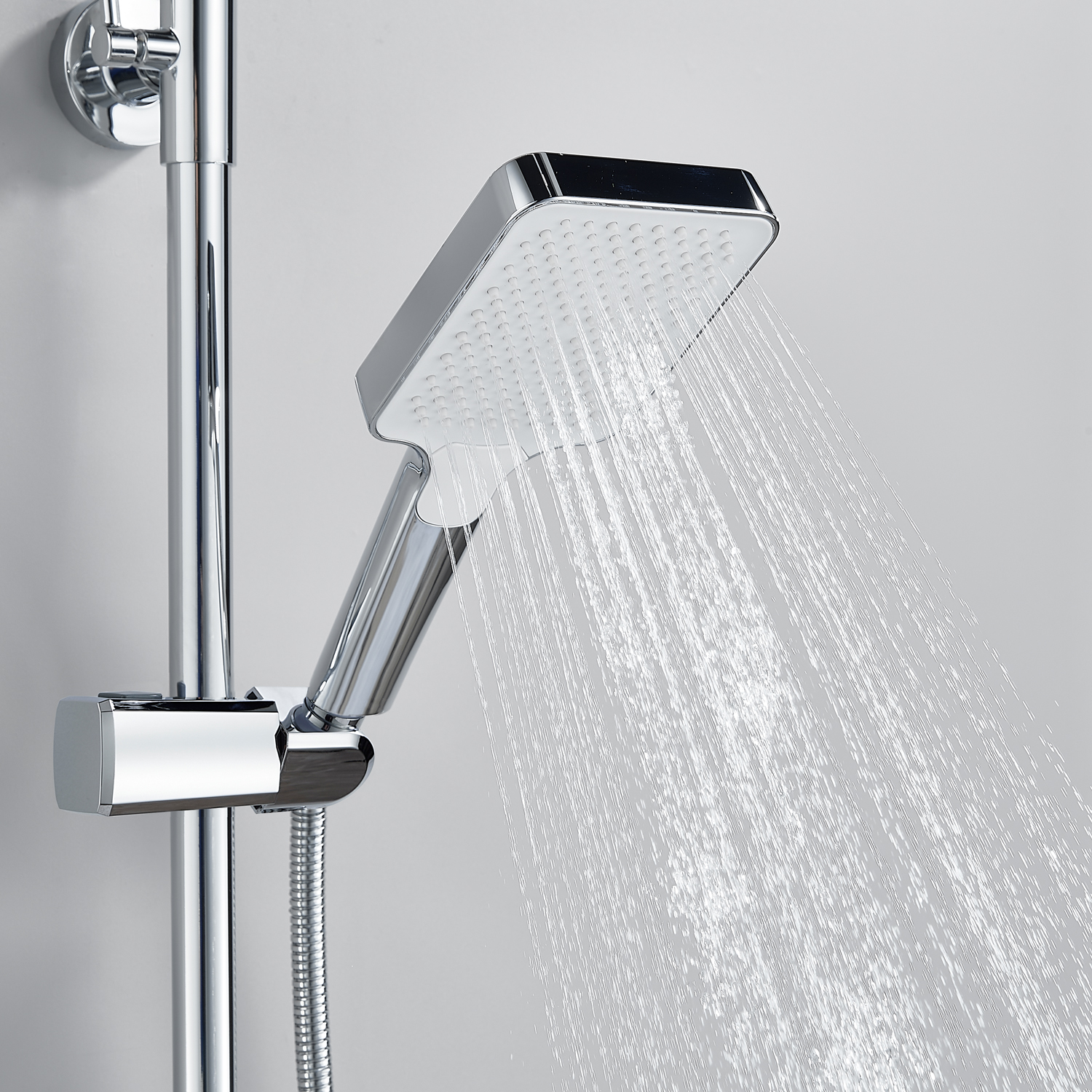 | Комплектация | смеситель, душевая стойка, верхний душ, душевая лейка, душевой шланг, держатель для душевой лейки, настенный держатель, отражатели, эксцентрики |