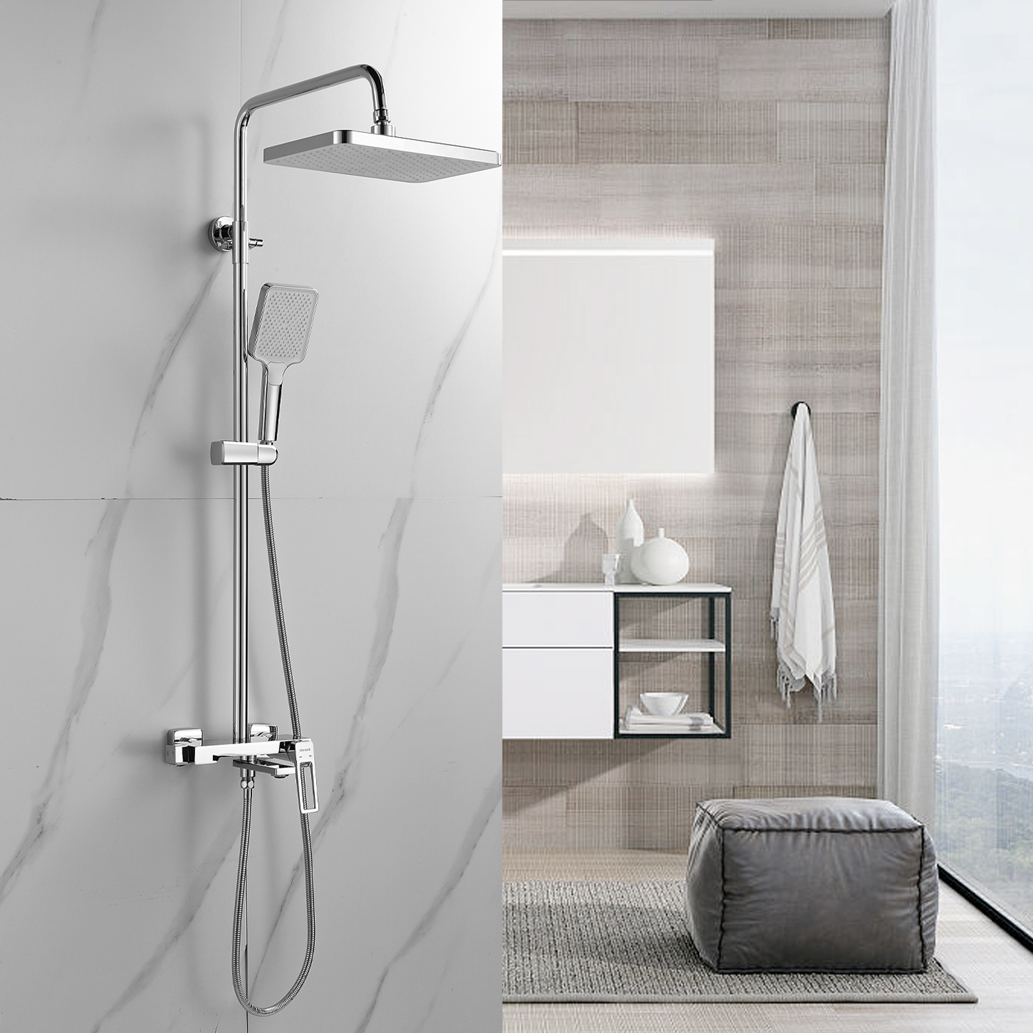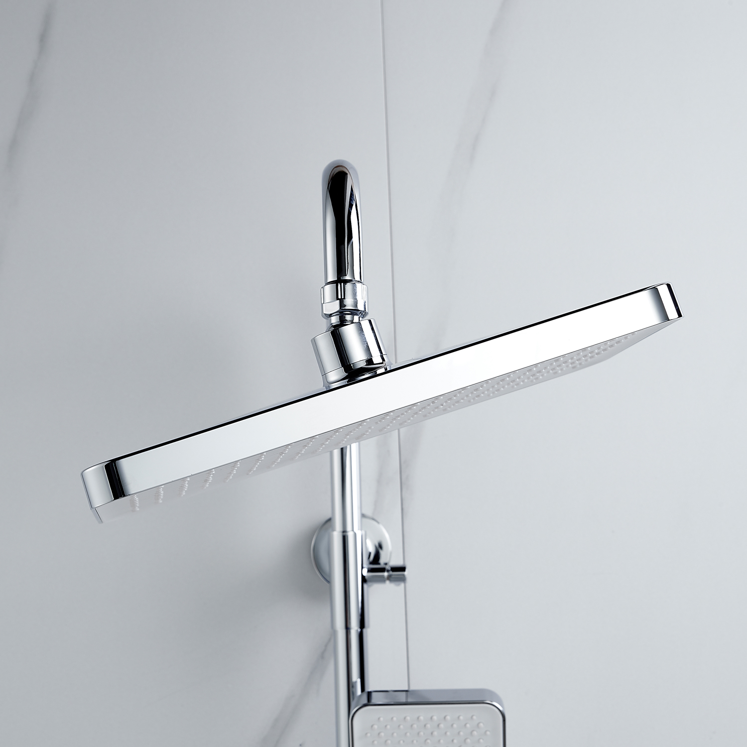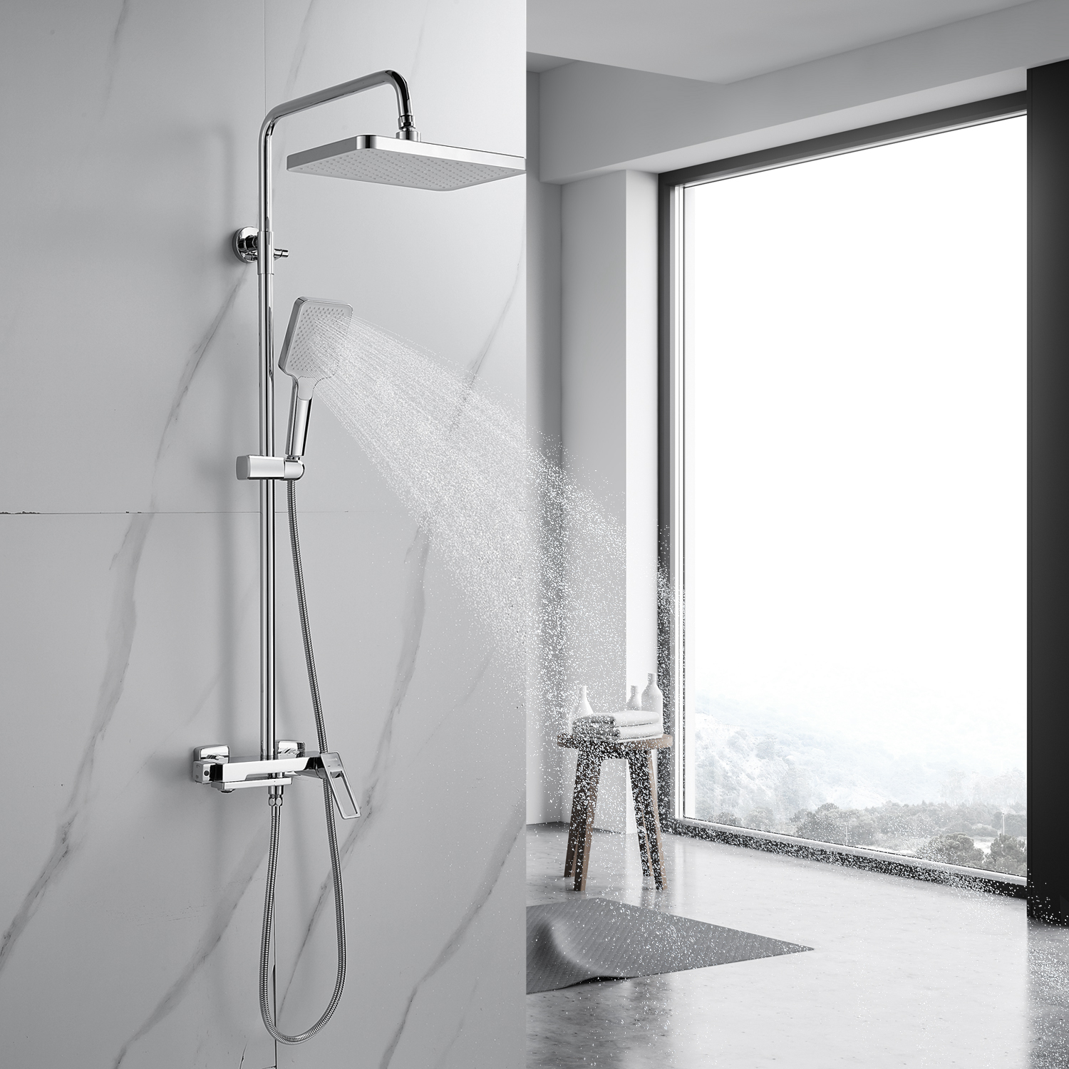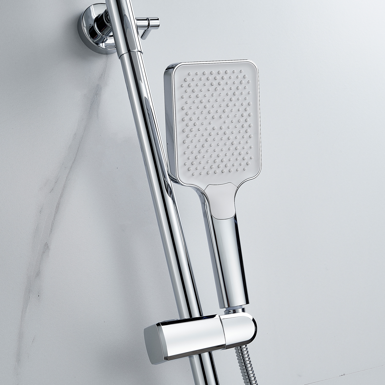| Комплектация | смеситель, душевая стойка, верхний душ, душевая лейка, душевой шланг, держатель для душевой лейки, настенный держатель, отражатели, эксцентрики |