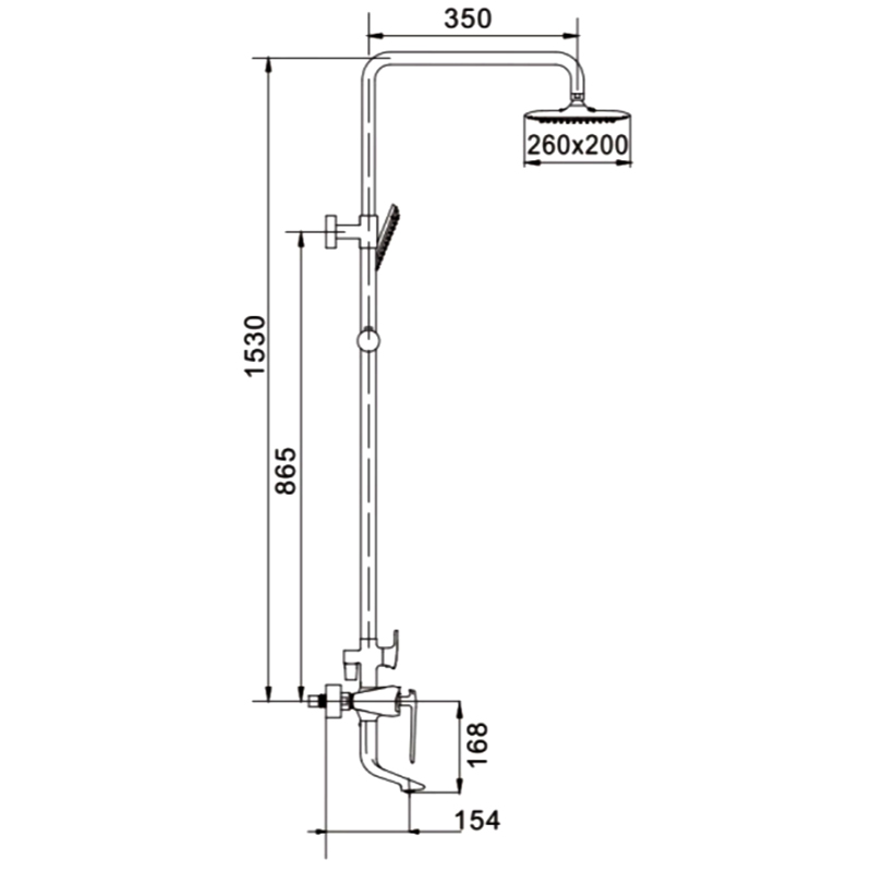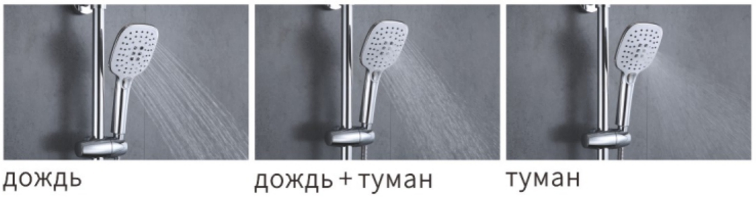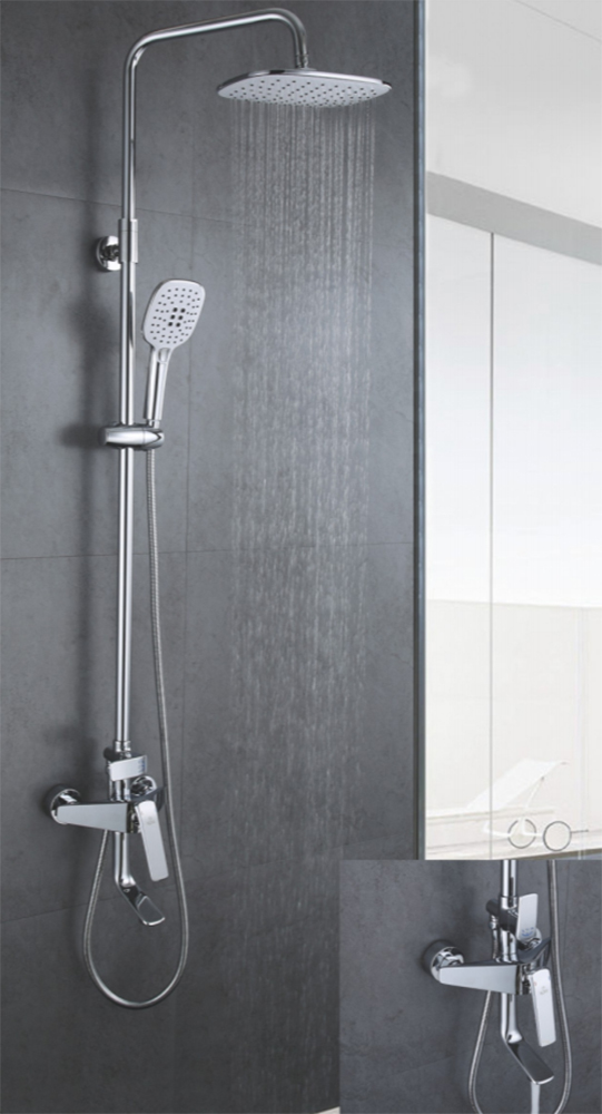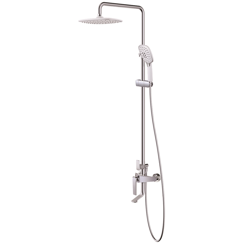Комплектация | смеситель, душевая стойка, верхний душ, душевая лейка, душевой шланг, держатель для душевой лейки, настенный держатель, отражатели, эксцентрики |