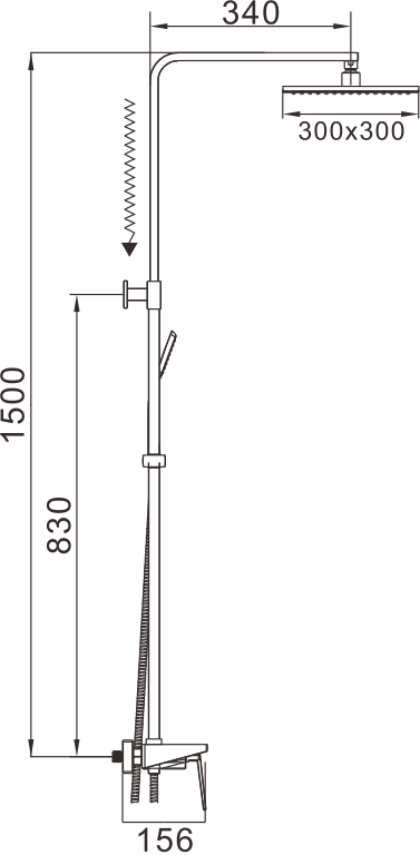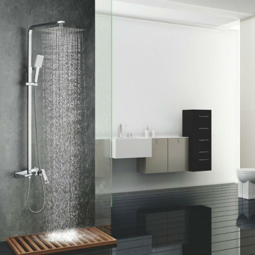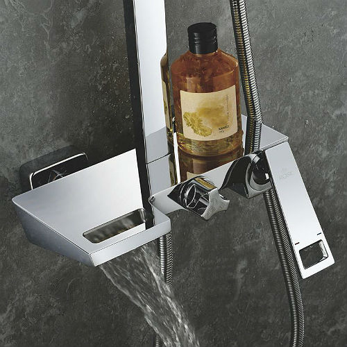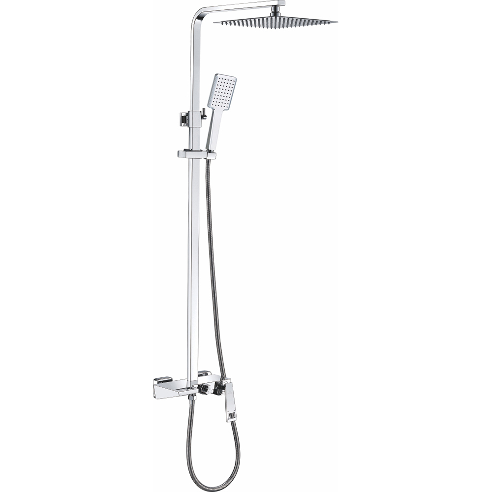 | Комплектация | смеситель, душевая стойка, верхний душ, душевая лейка, душевой шланг, держатель для душевой лейки, настенный держатель, отражатели, эксцентрики |