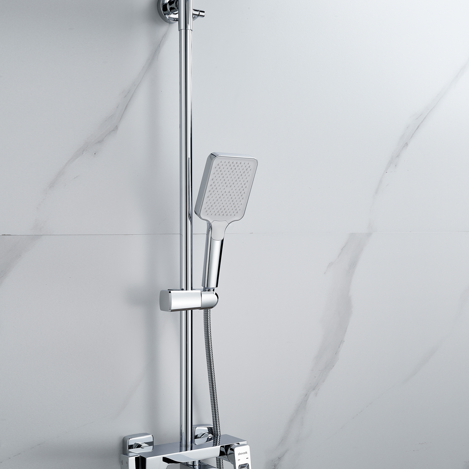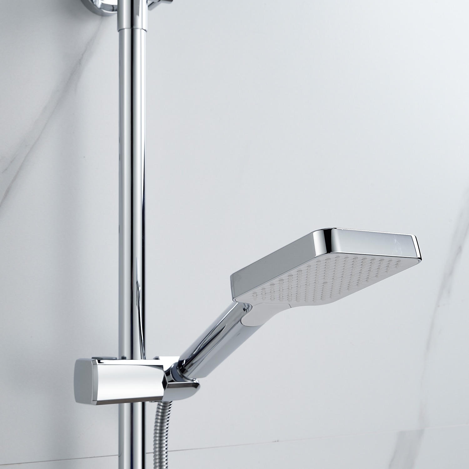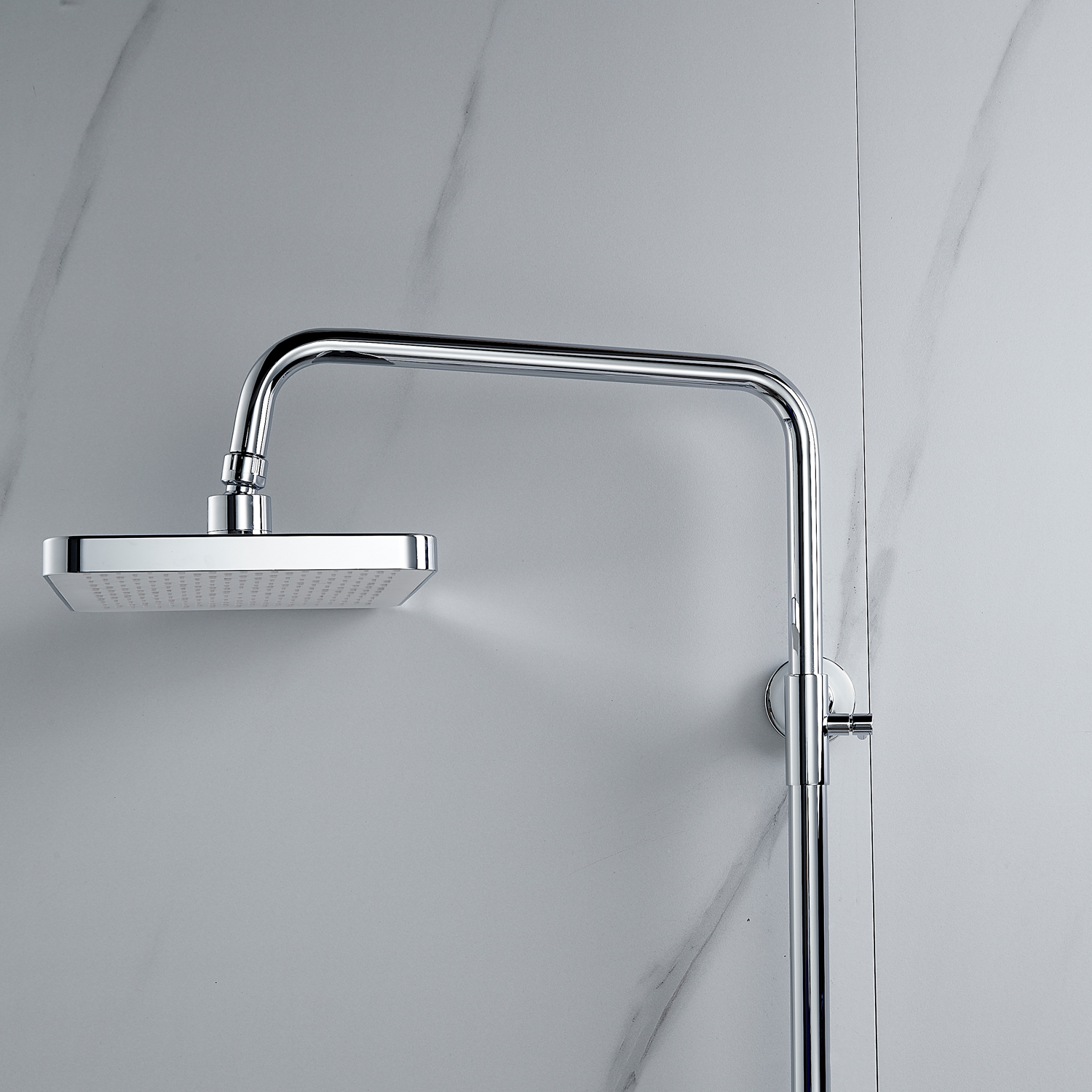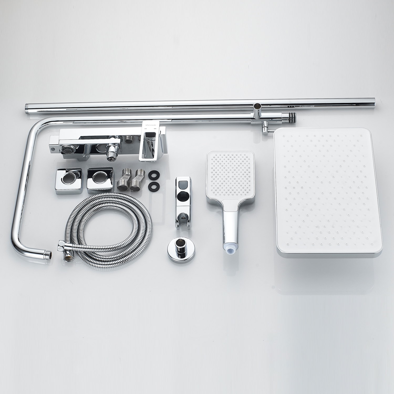 | Комплектация | смеситель, душевая стойка, верхний душ, душевая лейка, душевой шланг, держатель для душевой лейки, настенный держатель, отражатели, эксцентрики |