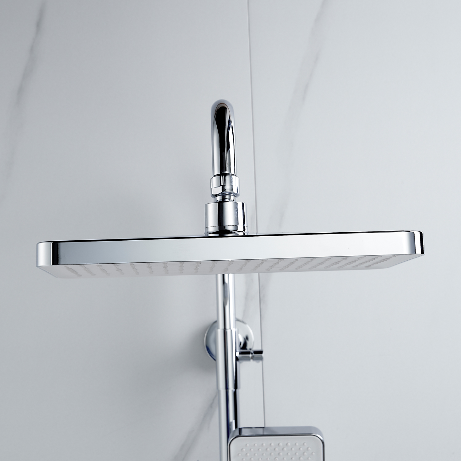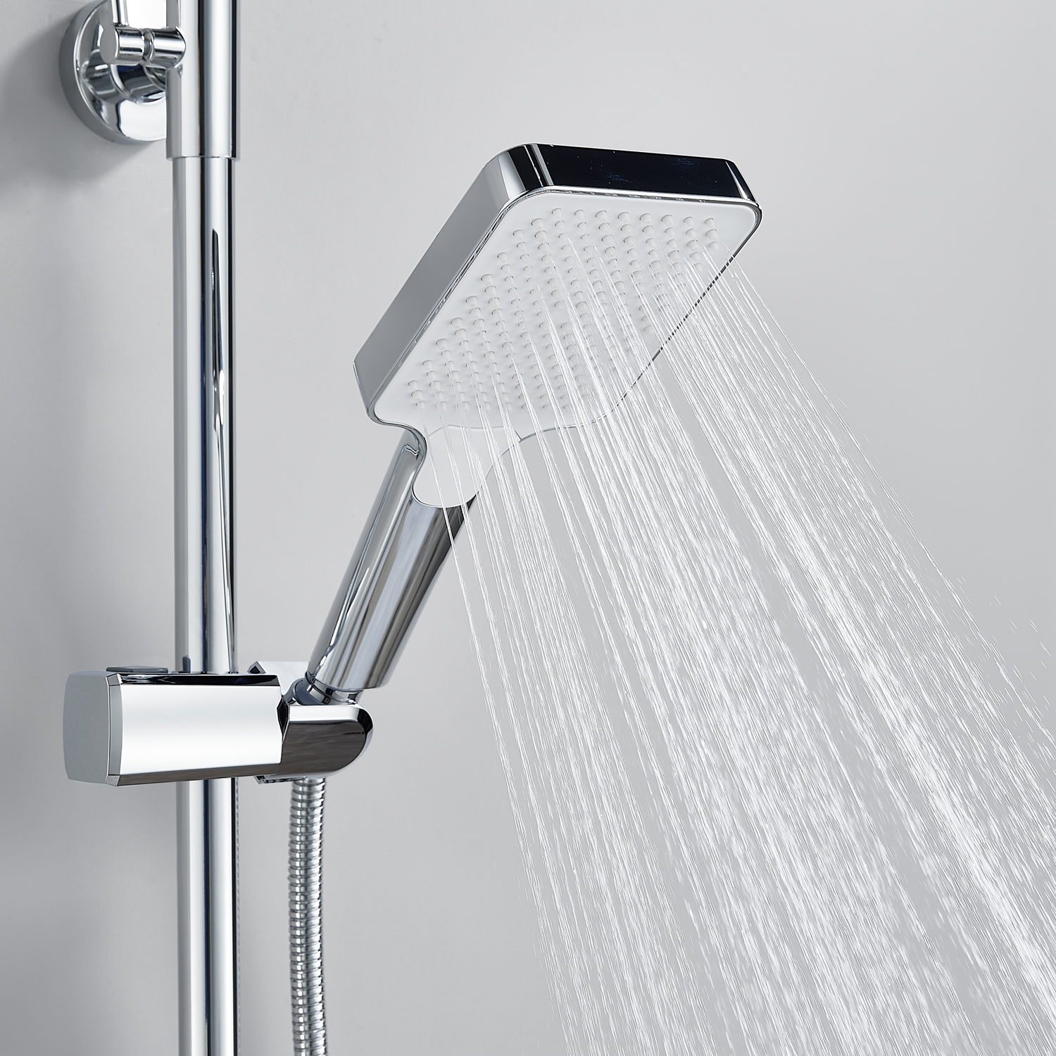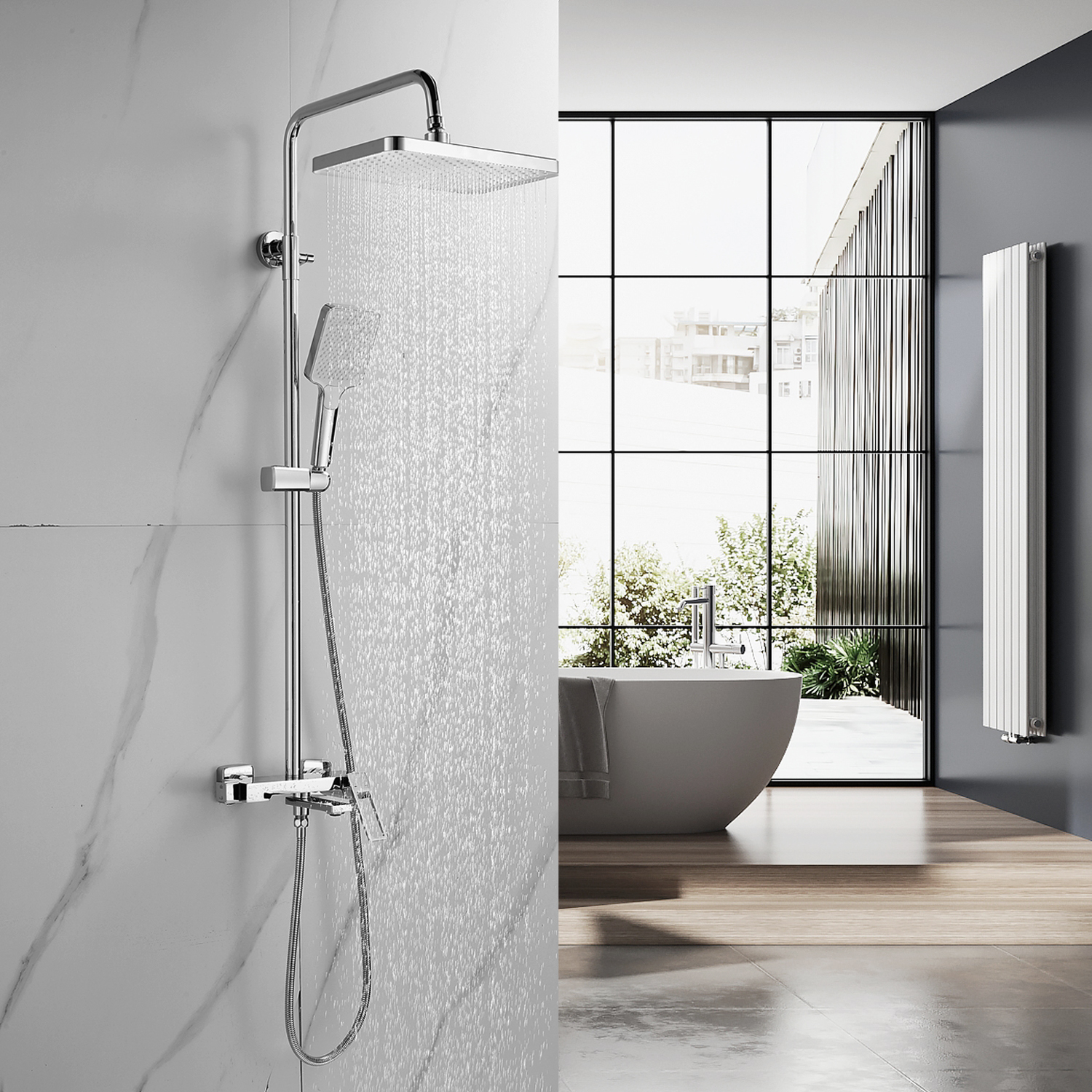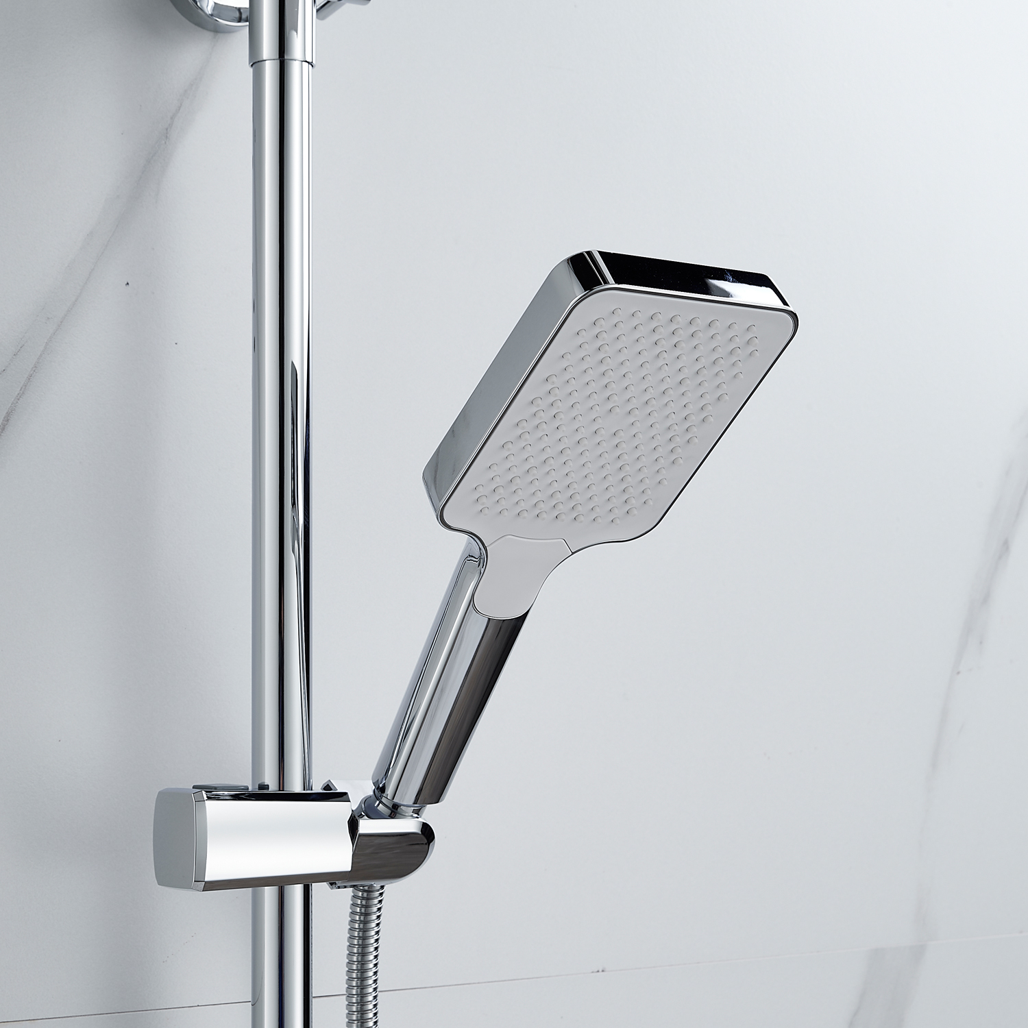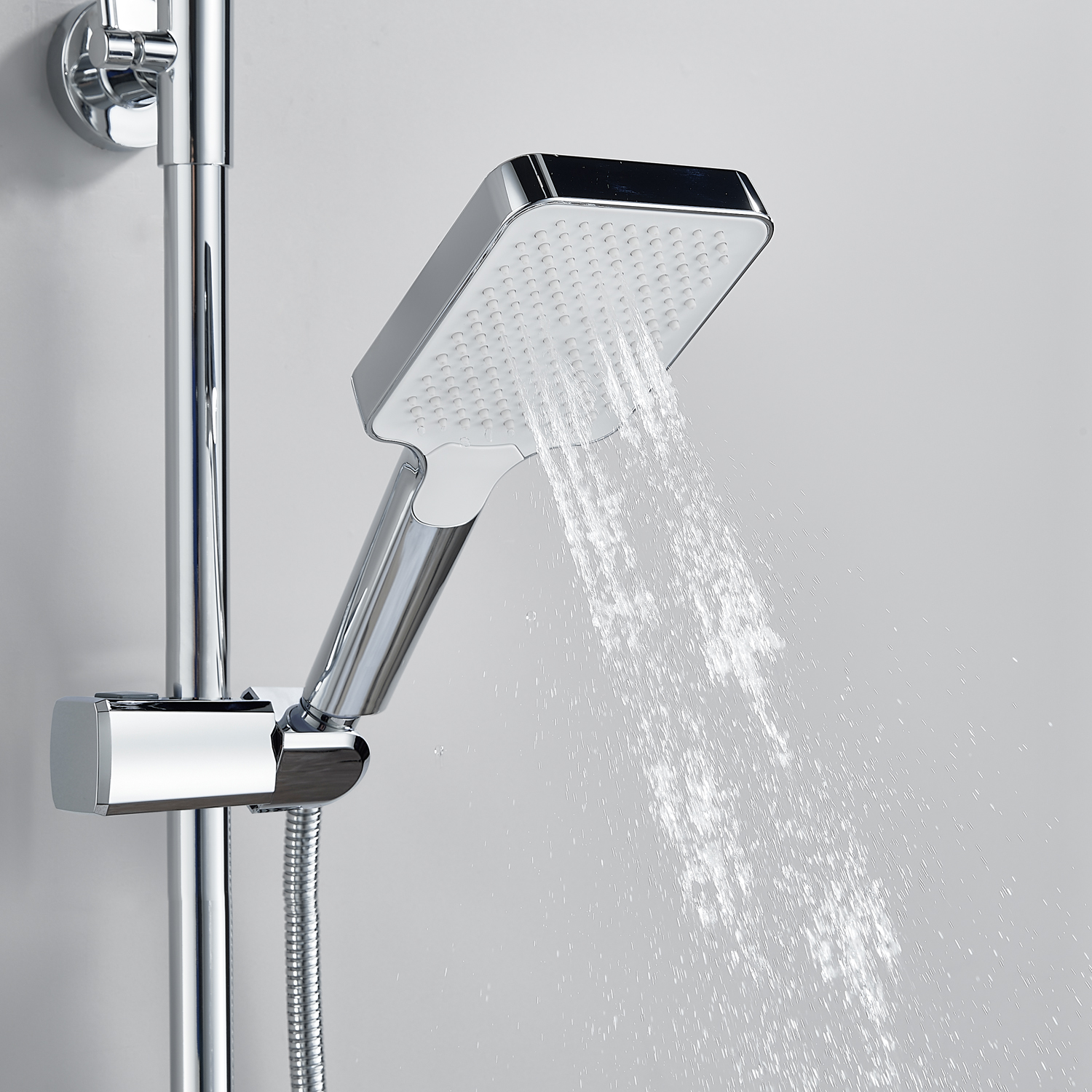 | Комплектация | смеситель, душевая стойка, верхний душ, душевая лейка, душевой шланг, держатель для душевой лейки, настенный держатель, отражатели, эксцентрики |