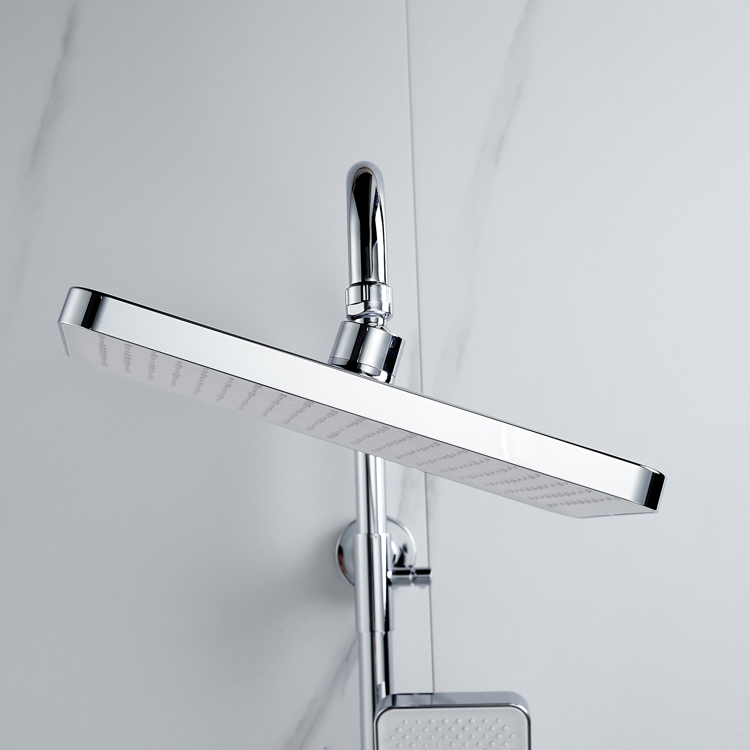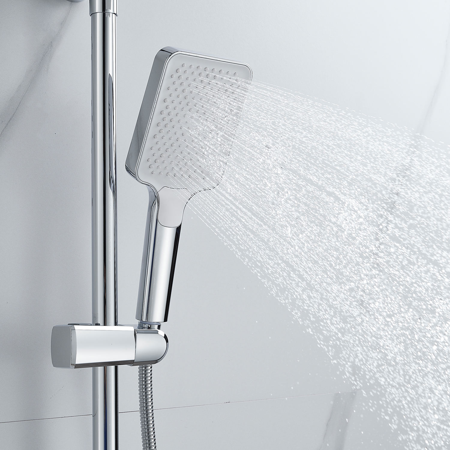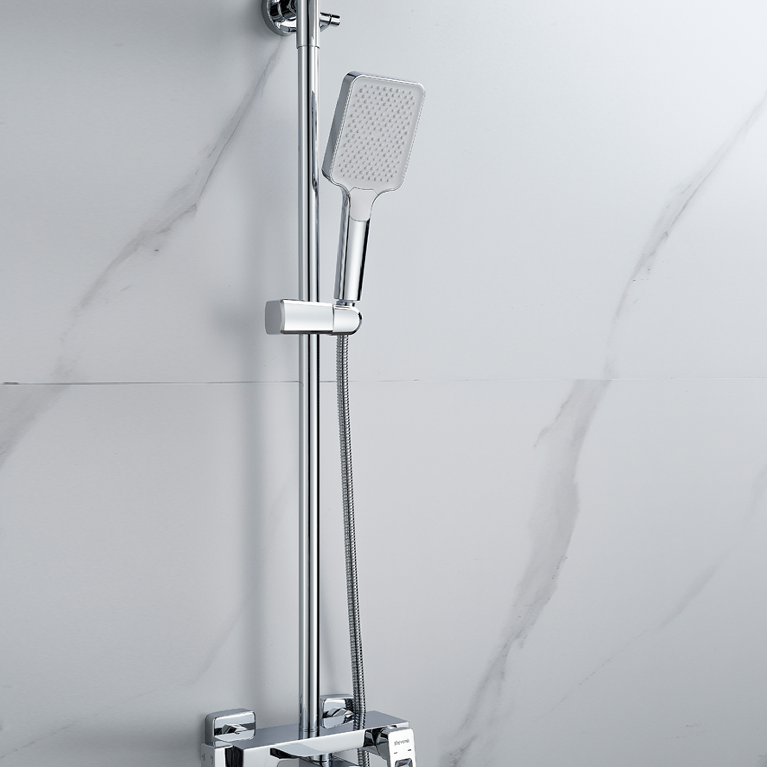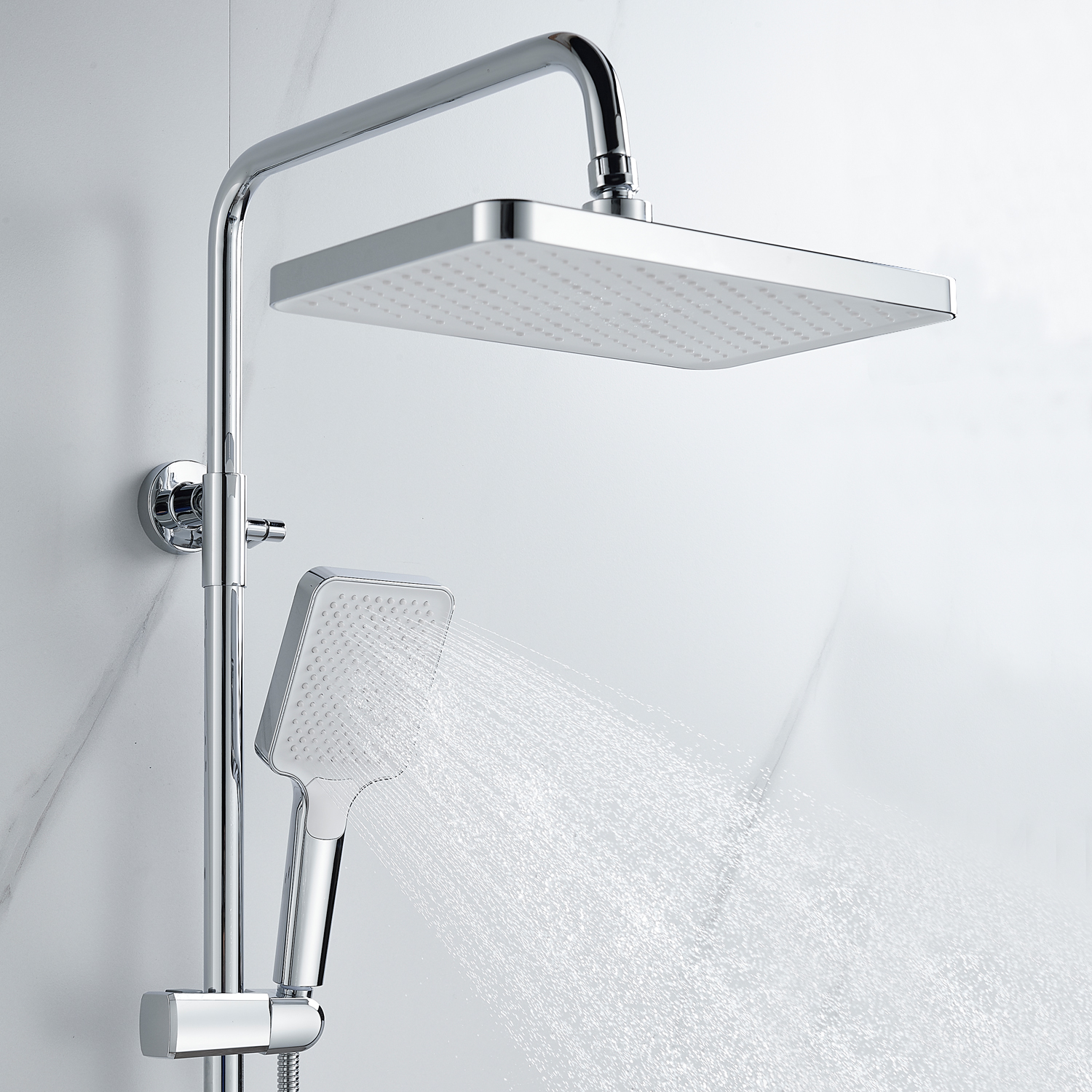 | Комплектация | смеситель, душевая стойка, верхний душ, душевая лейка, душевой шланг, держатель для душевой лейки, настенный держатель, отражатели, эксцентрики |