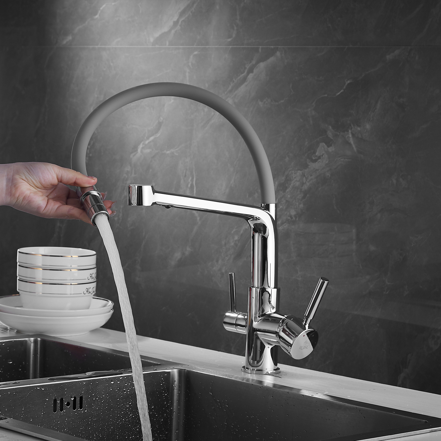 Смеситель для кухни с гибким изливом Rose R658