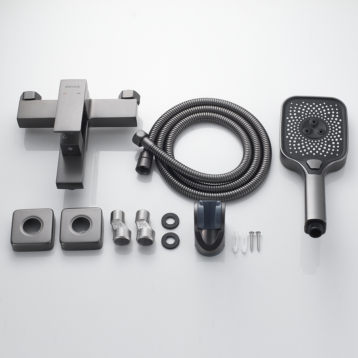 | Комплектация | держатель лейки, душевая лейка, душевой шланг, комплект отражателей, комплект эксцентриков, смеситель |